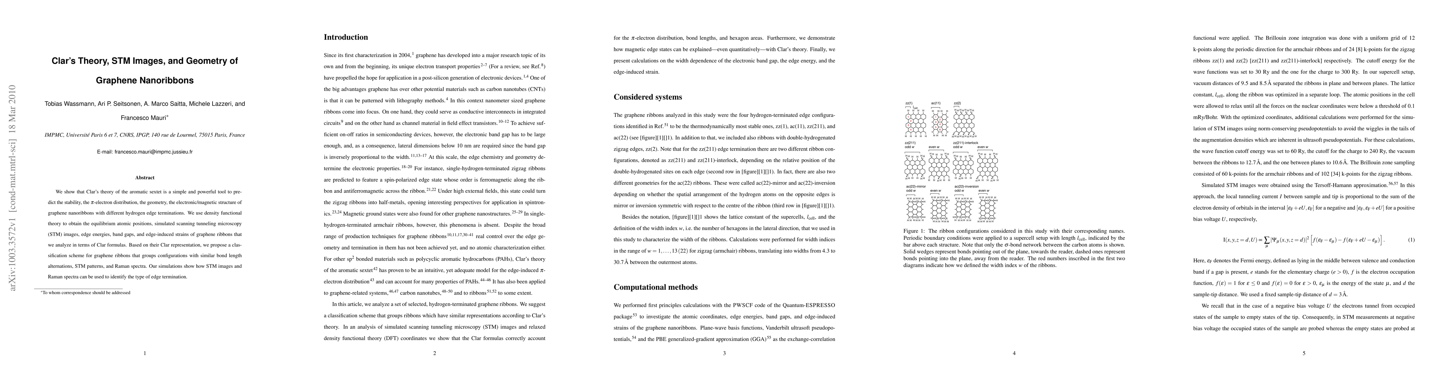 This paper demonstrates the application of Clar's aromatic sextet theory to predict properties of graphene nanoribbons with various hydrogen edge terminations. Using density functional theory, the researchers analyze equilibrium atomic positions, STM images, edge energies, band gaps, and strains. They propose a classification scheme for graphene ribbons based on Clar representations, linking STM images and Raman spectra to edge terminations.