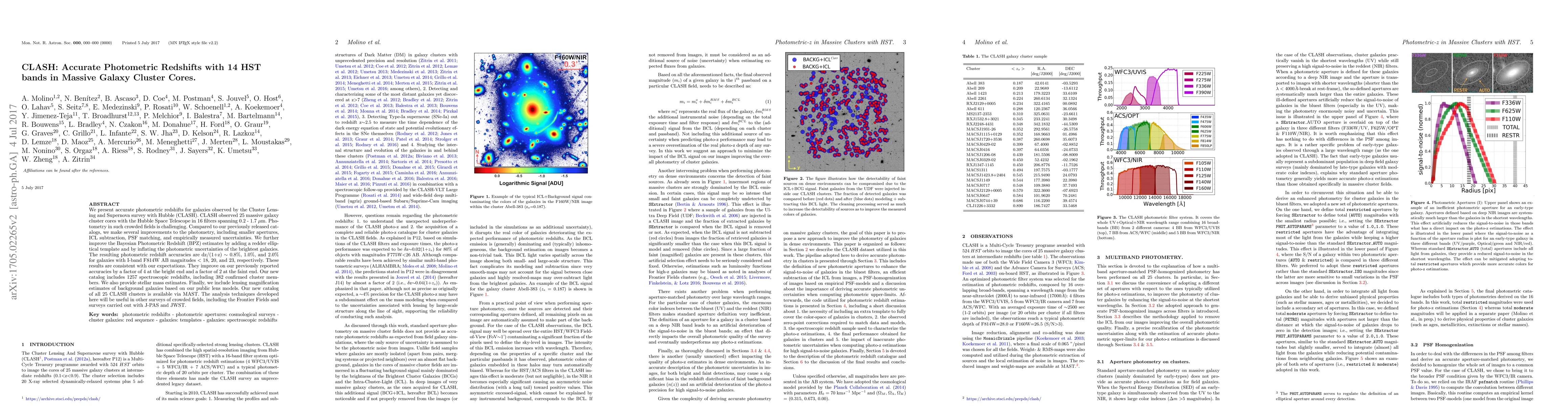This paper presents improved photometric redshifts for galaxies in 25 massive galaxy cluster cores observed by the CLASH survey using the Hubble Space Telescope. The authors enhance the accuracy of their Bayesian Photometric Redshift estimates through refined techniques, resulting in accuracies of dz/(1+z) $\sim$ 0.8\%, 1.0\%, and 2.0\% for galaxies of different magnitudes.