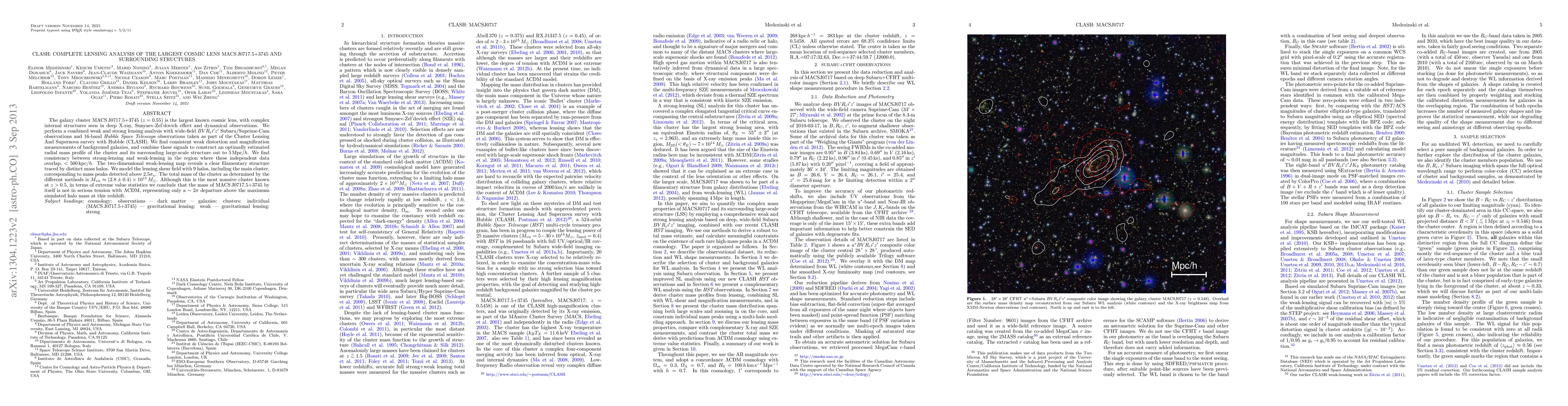 The paper presents a detailed methodology for combining weak and strong lensing analyses, resulting in a robust mass reconstruction of the cluster and its surrounding large-scale structure.