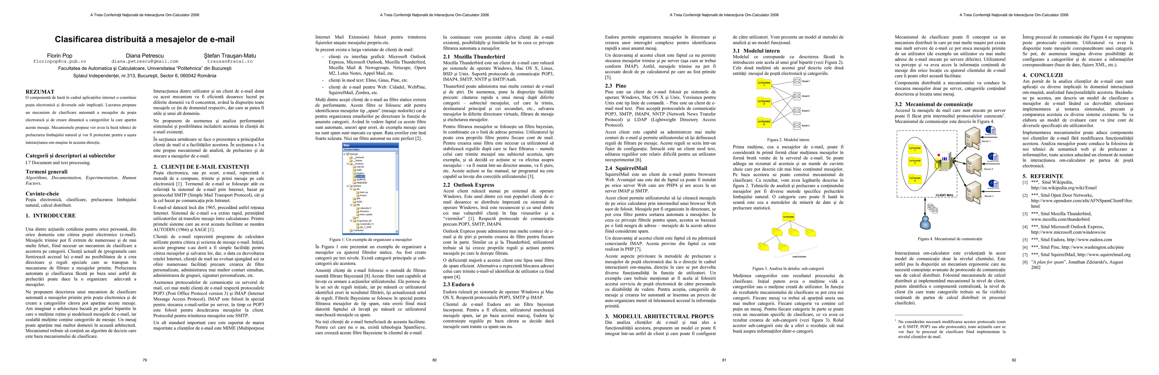A basic component in Internet applications is the electronic mail and its various implications. The paper proposes a mechanism for automatically classifying emails and create dynamic groups that belong to these messages. Proposed mechanisms will be based on natural language processing techniques and will be designed to facilitate human-machine interaction in this direction.