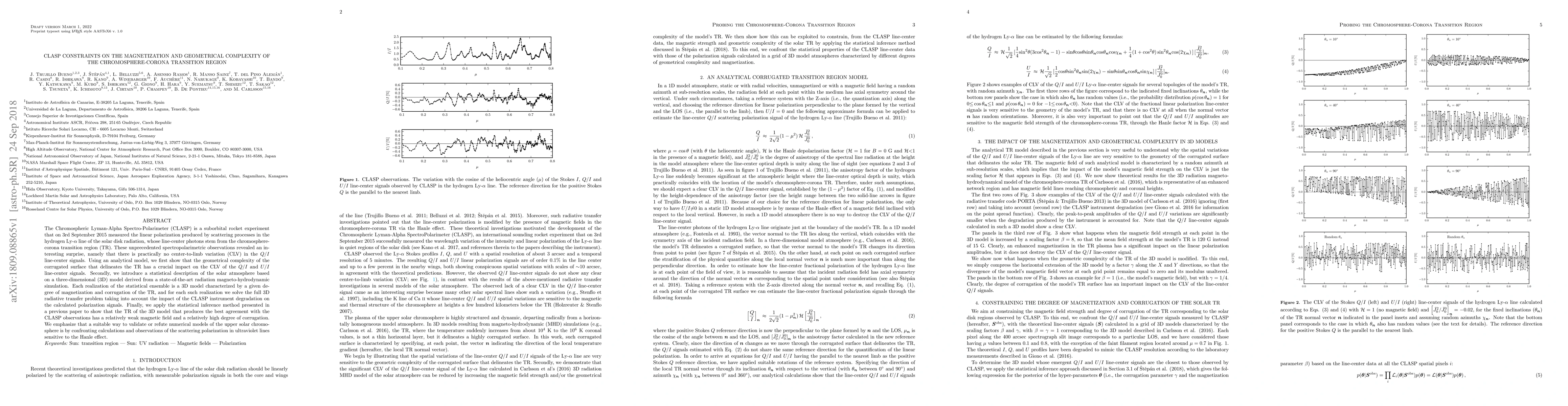 The CLASP experiment revealed minimal center-to-limb variation in the polarization of the hydrogen Ly-$\alpha$ line, indicating a complex chromosphere-corona transition region geometry. A 3D statistical model of the solar atmosphere suggests that the TR's best agreement with observations features a weak magnetic field and high corrugation.