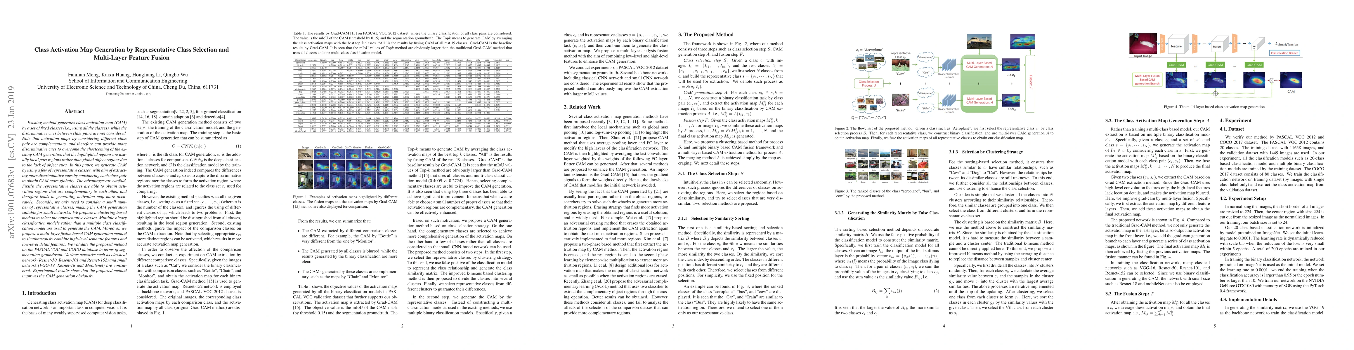 This paper proposes a novel method for generating class activation maps (CAMs) by selecting representative classes and fusing multi-layer features, which improves CAM accuracy and efficiency.