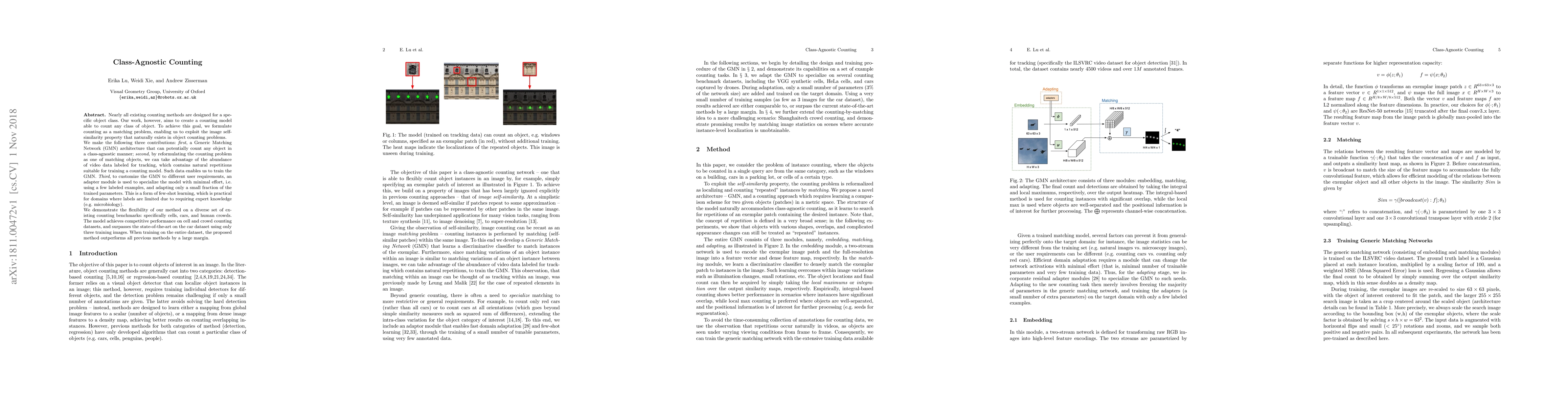 This paper introduces a class-agnostic counting model using a Generic Matching Network (GMN) that leverages image self-similarity for counting any object class. It achieves this through few-shot learning with an adapter module, demonstrating competitive performance on cell, car, and crowd counting benchmarks.