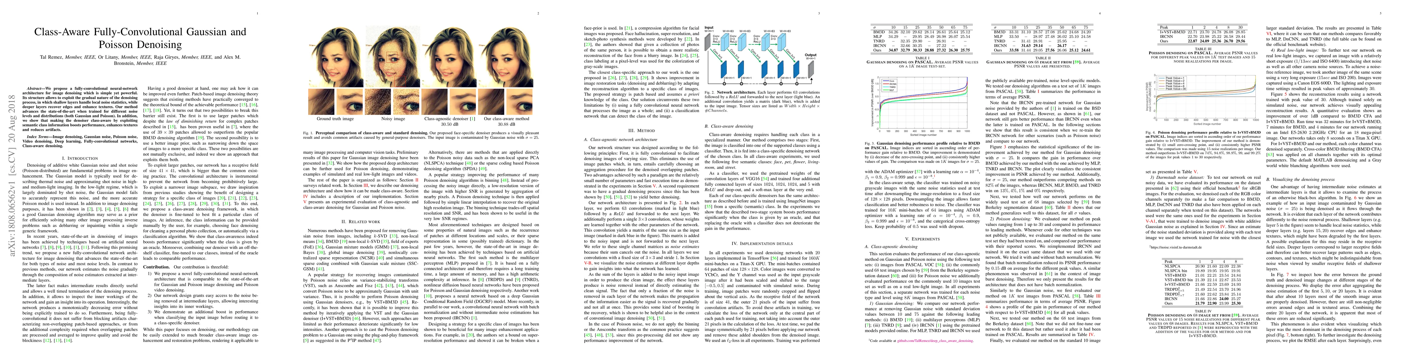 This research paper proposes a class-aware fully-convolutional neural network for image denoising that outperforms the state-of-the-art in handling different noise levels and distributions, and enhances textures with added semantic class information.