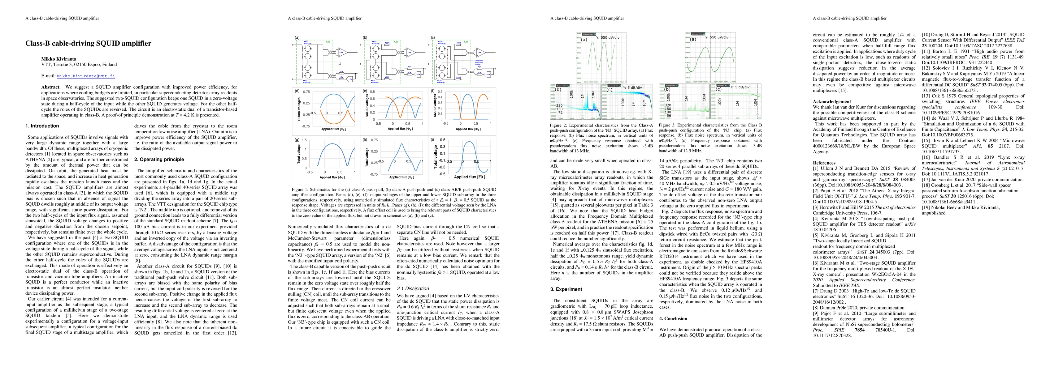 Researchers propose a new SQUID amplifier design for limited cooling budgets, achieving improved power efficiency through a class-B configuration. A proof-of-principle demonstration at 4.2 K demonstrates the feasibility of this innovative technology.