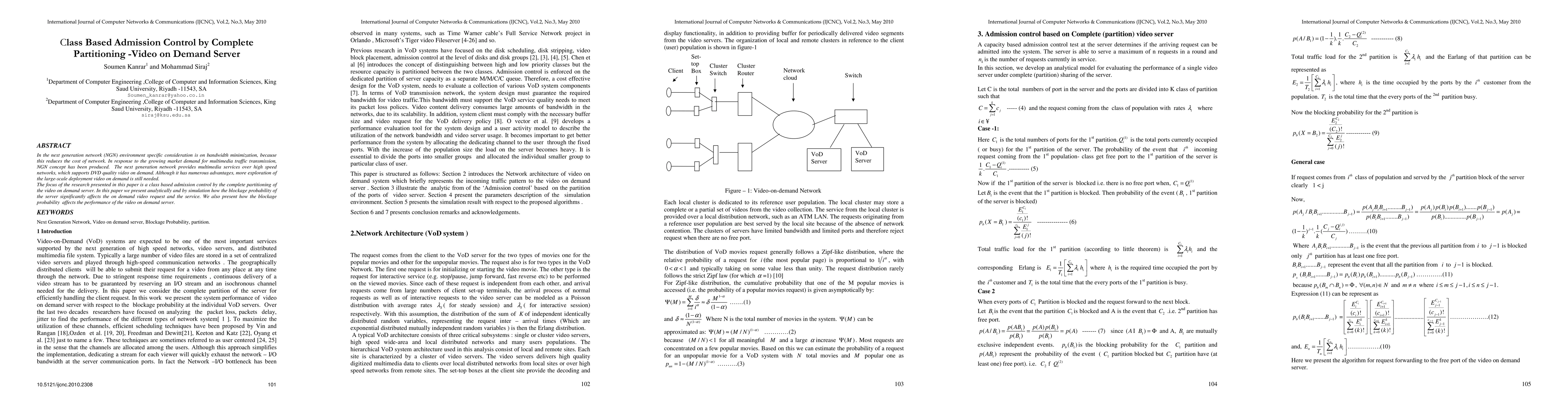 In the next generation network (NGN) environment specific consideration is on bandwidth minimization, because this reduces the cost of network. In response to the growing market demand for multimedia traffic transmission, NGN concept has been produced. The next generation network provides multimedia services over high speed networks, which supports DVD quality video on demand. Although it has numerous advantages, more exploration of the large-scale deployment video on demand is still needed. The focus of the research presented in this paper is a class based admission control by the complete partitioning of the video on demand server. In this paper we present analytically and by simulation how the blockage probability of the server significantly affects the on demand video request and the service. We also present how the blockage probability affects the performance of the video on demand server.