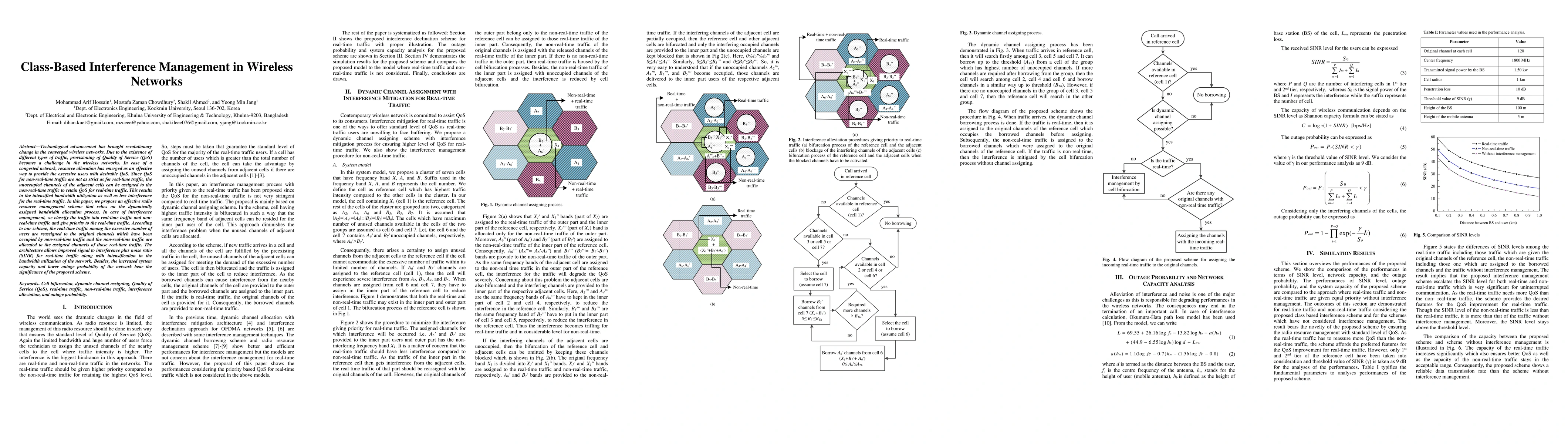 The paper presents a class-based interference management scheme that dynamically assigns bandwidth and channels, prioritizing real-time traffic for improved QoS in wireless networks.