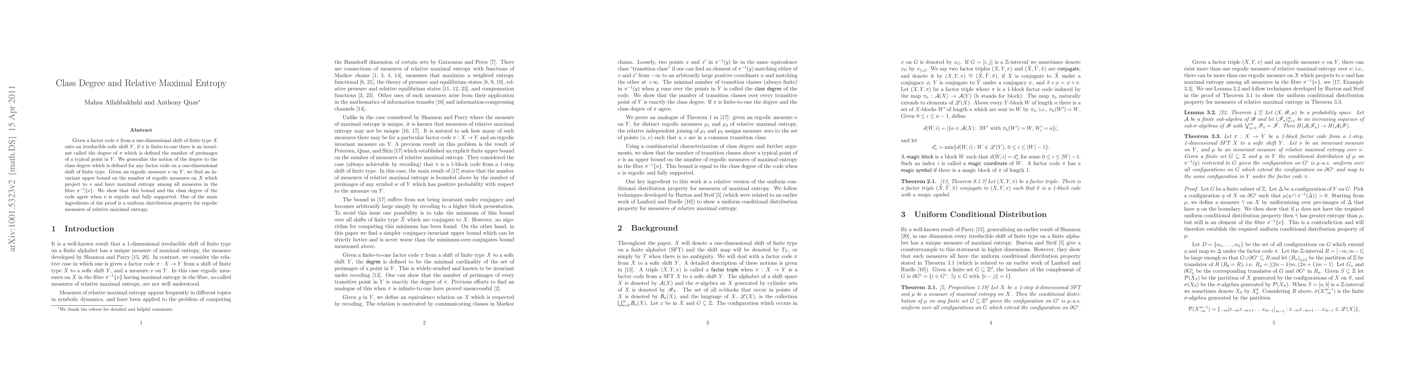 Given a factor code $\pi$ from a one-dimensional shift of finite type $X$ onto an irreducible sofic shift $Y$, if $\pi$ is finite-to-one there is an invariant called the degree of $\pi$ which is defined the number of preimages of a typical point in $Y$. We generalize the notion of the degree to the class degree which is defined for any factor code on a one-dimensional shift of finite type. Given an ergodic measure $\nu$ on $Y$, we find an invariant upper bound on the number of ergodic measures on $X$ which project to $\nu$ and have maximal entropy among all measures in the fibre $\pi^{-1}\{\nu\}$. We show that this bound and the class degree of the code agree when $\nu$ is ergodic and fully supported. One of the main ingredients of the proof is a uniform distribution property for ergodic measures of relative maximal entropy.
