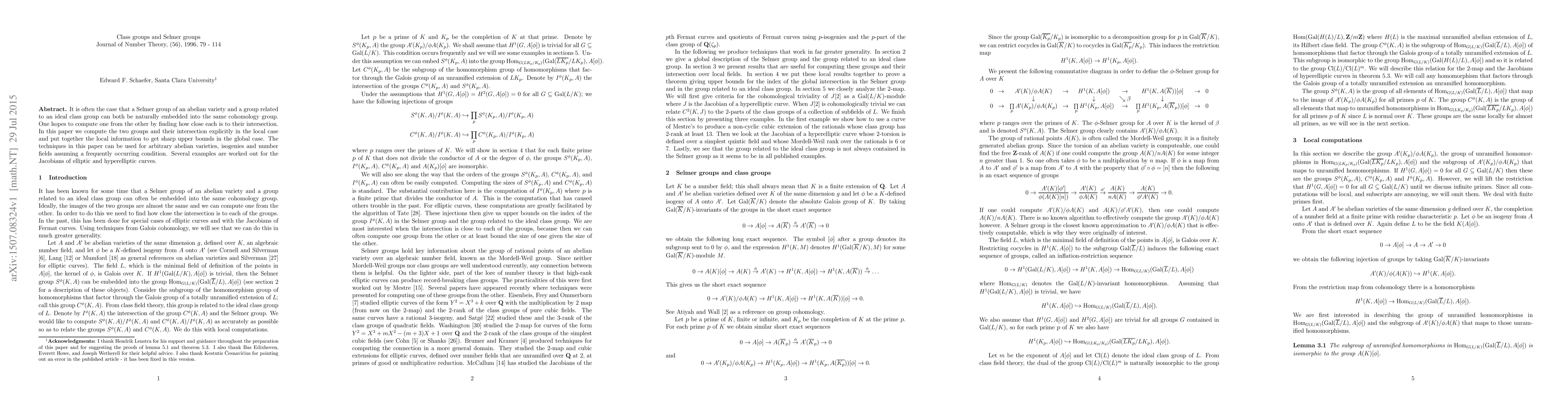It is often the case that a Selmer group of an abelian variety and a group related to an ideal class group can both be naturally embedded into the same cohomology group. One hopes to compute one from the other by finding how close each is to their intersection. In this paper we compute the two groups and their intersection explicitly in the local case and put together the local information to get sharp upper bounds in the global case. The techniques in this paper can be used for arbitrary abelian varieties, isogenies and number fields assuming a frequently occurring condition. Several examples are worked out for the Jacobians of elliptic and hyperelliptic curves.