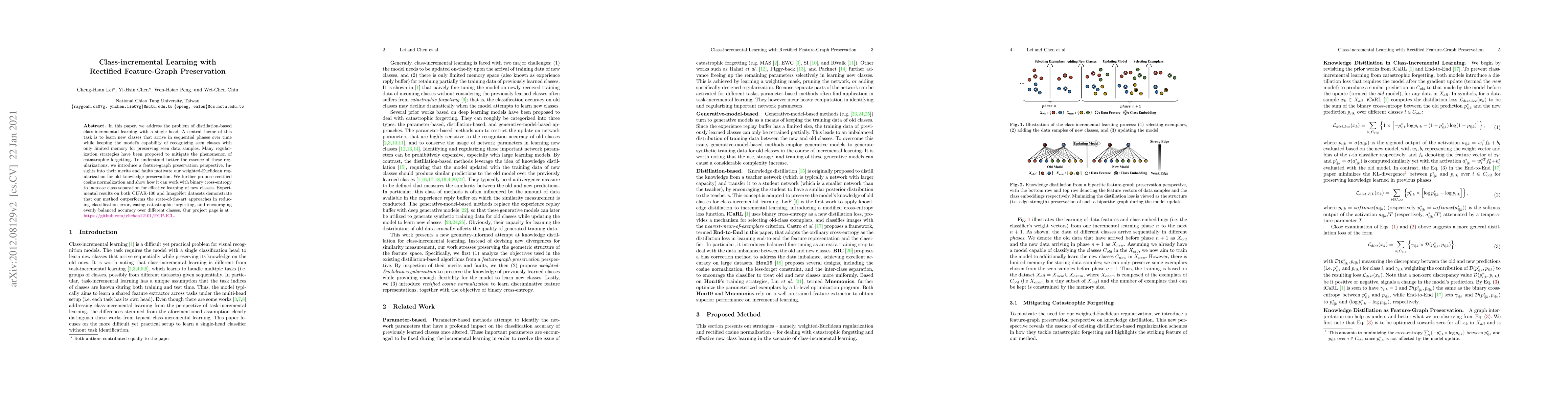 In this paper, we address the problem of distillation-based class-incremental learning with a single head. A central theme of this task is to learn new classes that arrive in sequential phases over time while keeping the model's capability of recognizing seen classes with only limited memory for preserving seen data samples. Many regularization strategies have been proposed to mitigate the phenomenon of catastrophic forgetting. To understand better the essence of these regularizations, we introduce a feature-graph preservation perspective. Insights into their merits and faults motivate our weighted-Euclidean regularization for old knowledge preservation. We further propose rectified cosine normalization and show how it can work with binary cross-entropy to increase class separation for effective learning of new classes. Experimental results on both CIFAR-100 and ImageNet datasets demonstrate that our method outperforms the state-of-the-art approaches in reducing classification error, easing catastrophic forgetting, and encouraging evenly balanced accuracy over different classes. Our project page is at : https://github.com/yhchen12101/FGP-ICL.