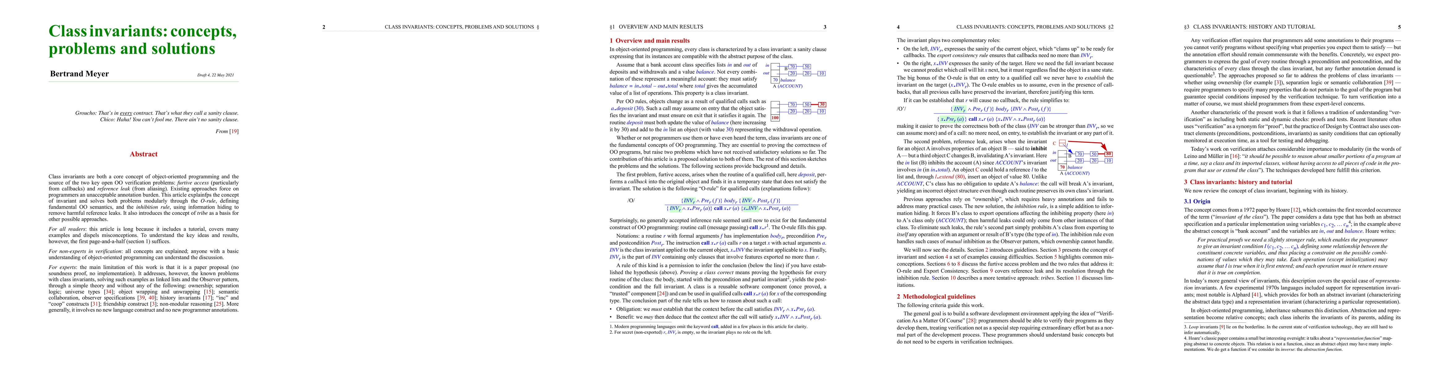 Class invariants are both a core concept of object-oriented programming and the source of the two key open OO verification problems: furtive access (from callbacks) and reference leak. Existing approaches force on programmers an unacceptable annotation burden. This article explains invariants and solves both problems modularly through the O-rule, defining fundamental OO semantics, and the inhibition rule, using information hiding to remove harmful reference leaks. It also introduces the concept of "object tribe" as a basis for other possible approaches. For all readers: this article is long because it includes a tutorial, covers many examples and dispels misconceptions. To understand the key ideas and results, however, the first two pages suffice. For non-experts in verification: all concepts are explained; anyone with a basic understanding of object-oriented programming can understand the discussion. For experts: the main limitation of this work is that it is a paper proposal (no soundness proof, no implementation). It addresses, however, the known problems with class invariants, solving such examples as linked lists and Observer, through a simple theory and without any of the following: ownership; separation logic; universe types; object wrapping and unwrapping; semantic collaboration, observer specifications; history invariants; "inc" and "coop" constructs; friendship construct; non-modular reasoning. More generally, it involves no new language construct and no new programmer annotations.