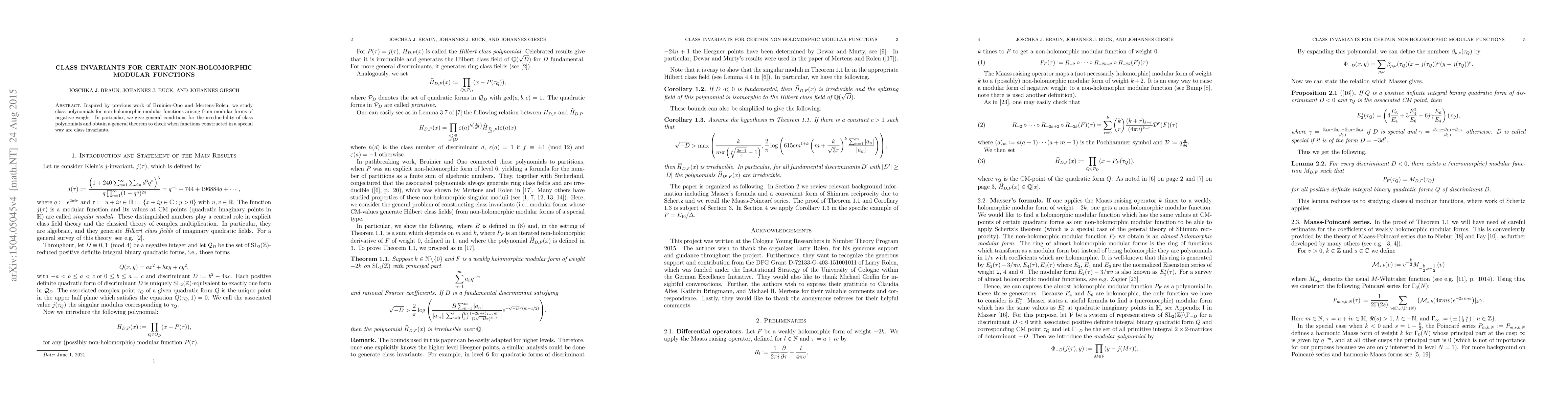 This paper investigates class polynomials for non-holomorphic modular functions derived from modular forms of negative weight, providing conditions for their irreducibility and generating infinitely many new class invariants.