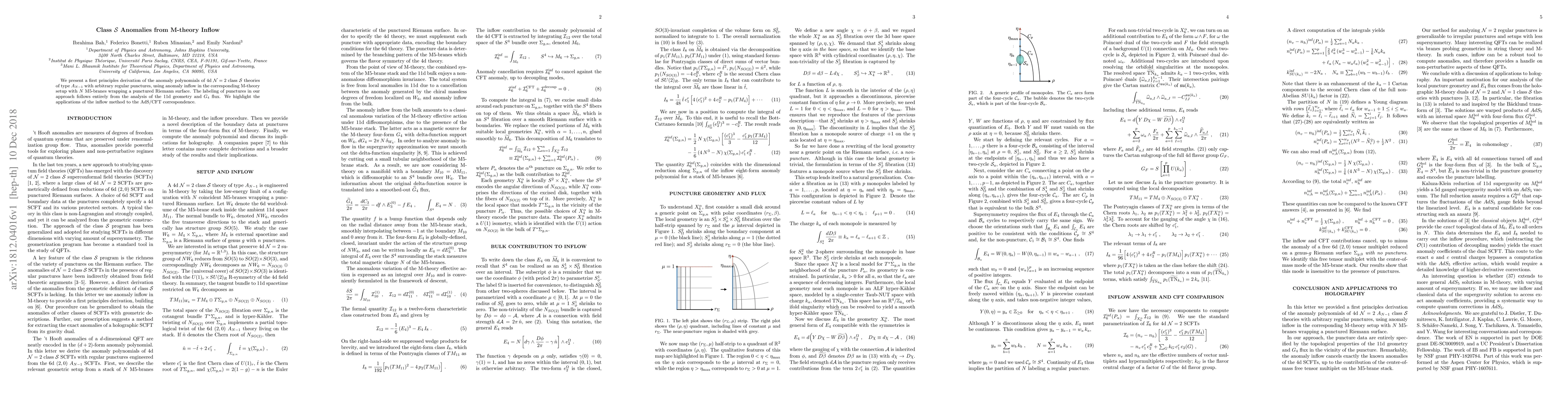 We present a first principles derivation of the anomaly polynomials of 4d $\mathcal{N} = 2$ class $\mathcal{S}$ theories of type $A_{N-1}$ with arbitrary regular punctures, using anomaly inflow in the corresponding M-theory setup with $N$ M5-branes wrapping a punctured Riemann surface. The labeling of punctures in our approach follows entirely from the analysis of the 11d geometry and $G_4$ flux. We highlight the applications of the inflow method to the AdS/CFT correspondence.