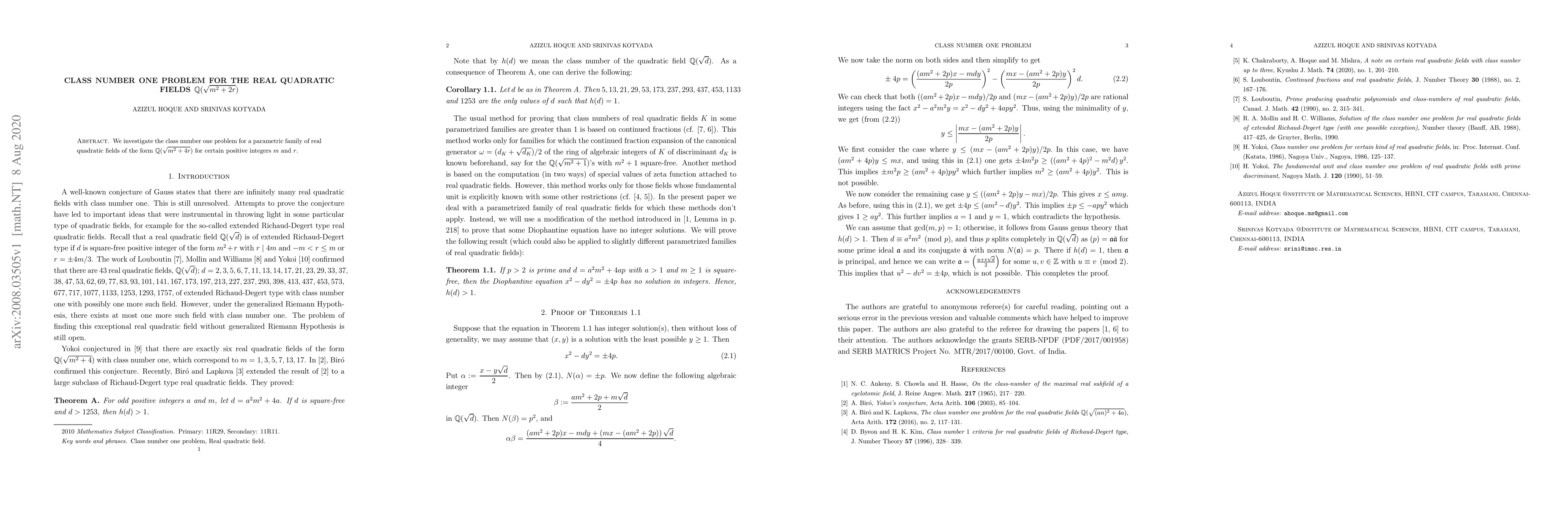 We investigate the class number one problem for a parametric family of real quadratic fields of the form $\mathbb{Q}( \sqrt{m^2+4r})$ for certain positive integers $m$ and $r$.