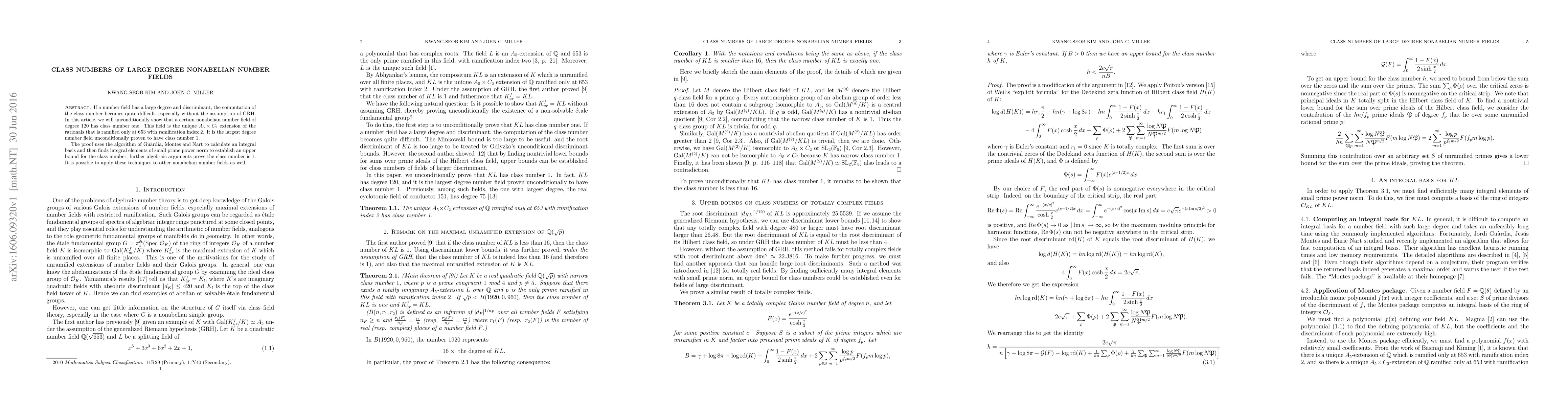 This paper demonstrates that a specific nonabelian number field of degree 120 has a class number of one, using an algorithm to calculate an integral basis and finding integral elements of small prime power norm. This is the largest degree number field proven unconditionally to have class number 1.