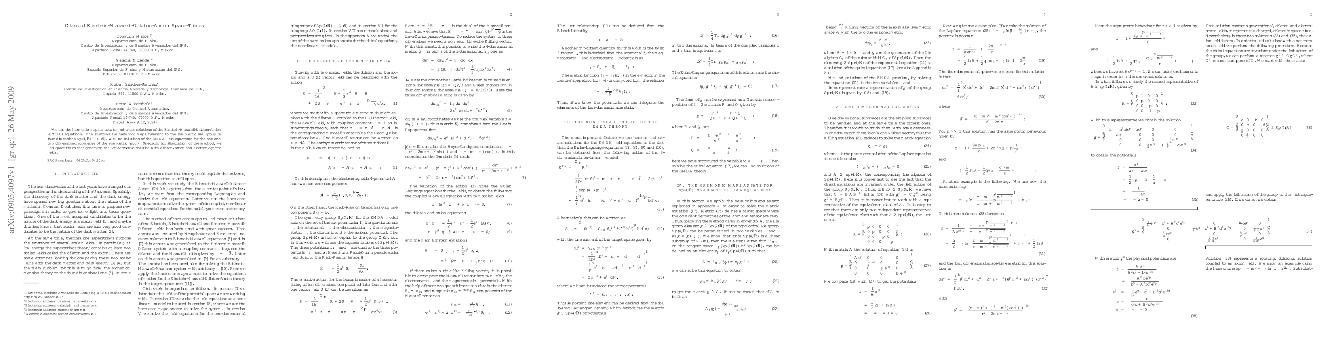 This paper presents exact solutions of the Einstein-Maxwell-Dilaton-Axion (EMDA) equations using the harmonic maps ansatz, focusing on solutions invariant to the $Sp(4,\Rreal) \sim O(5)$ symplectic group. The study highlights space-times generalizing the Schwarzschild solution with dilaton, axion, and electromagnetic fields.