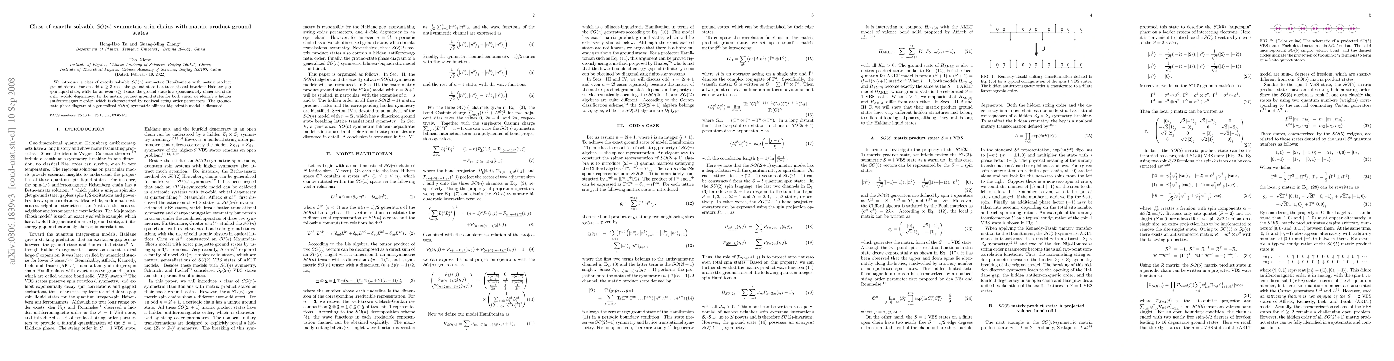 We introduce a class of exactly solvable SO(n) symmetric Hamiltonians with matrix product ground states. For an odd $n\geq 3$ case, the ground state is a translational invariant Haldane gap spin liquid state; while for an even $n\geq 4$ case, the ground state is a spontaneously dimerized state with twofold degeneracy. In the matrix product ground states for both cases, we identify a hidden antiferromagnetic order, which is characterized by nonlocal string order parameters. The ground-state phase diagram of a generalized SO(n) symmetric bilinear-biquadratic model is discussed.