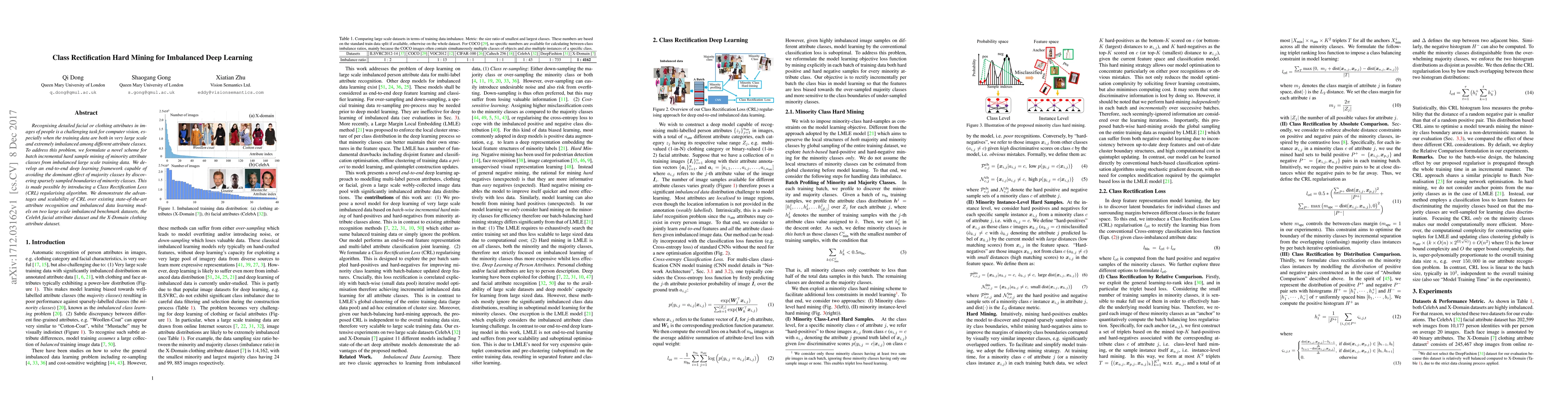 This paper proposes a novel scheme for batch incremental hard sample mining to tackle the challenge of imbalanced large-scale training data in computer vision tasks. It introduces a Class Rectification Loss (CRL) to focus on minority classes, demonstrating improved performance over existing models on facial and clothing attribute datasets.