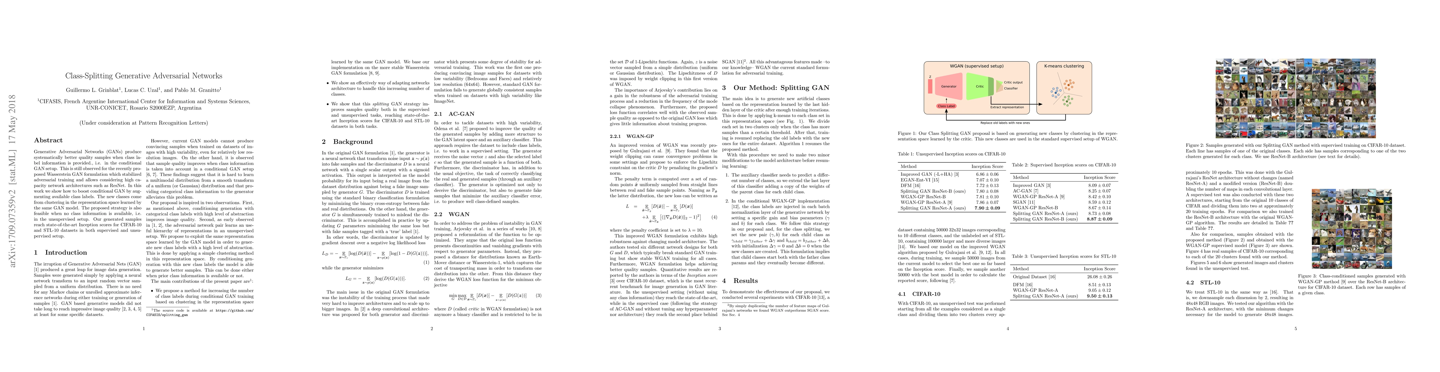 Generative Adversarial Networks (GANs) produce systematically better quality samples when class label information is provided., i.e. in the conditional GAN setup. This is still observed for the recently proposed Wasserstein GAN formulation which stabilized adversarial training and allows considering high capacity network architectures such as ResNet. In this work we show how to boost conditional GAN by augmenting available class labels. The new classes come from clustering in the representation space learned by the same GAN model. The proposed strategy is also feasible when no class information is available, i.e. in the unsupervised setup. Our generated samples reach state-of-the-art Inception scores for CIFAR-10 and STL-10 datasets in both supervised and unsupervised setup.