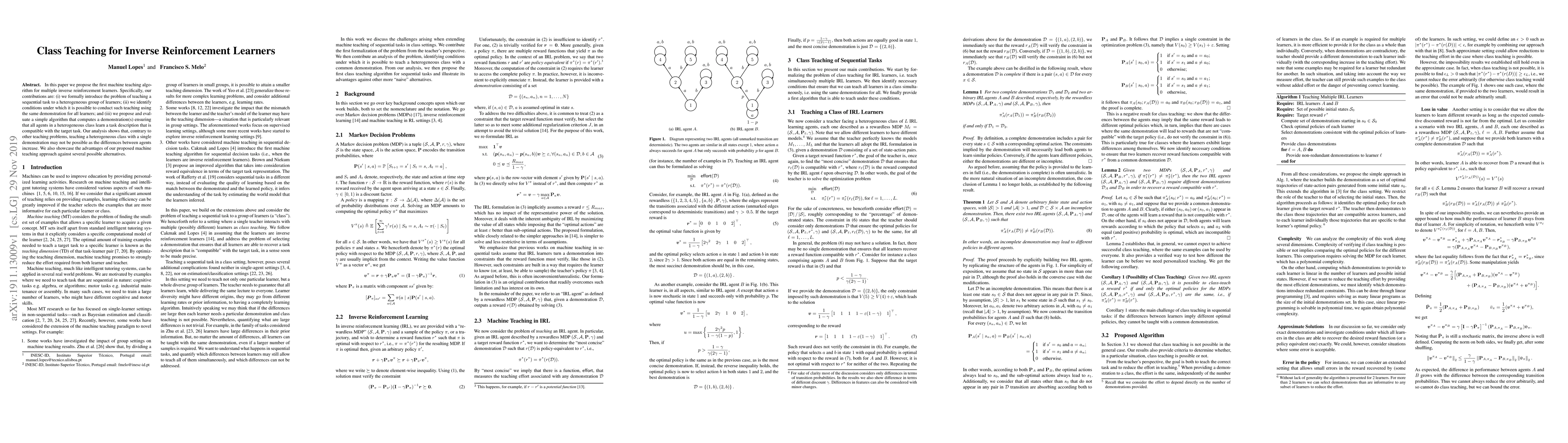 The paper introduces a novel algorithm for class teaching inverse reinforcement learners, providing conditions under which it is possible and demonstrating its effectiveness through comparisons with alternative approaches.