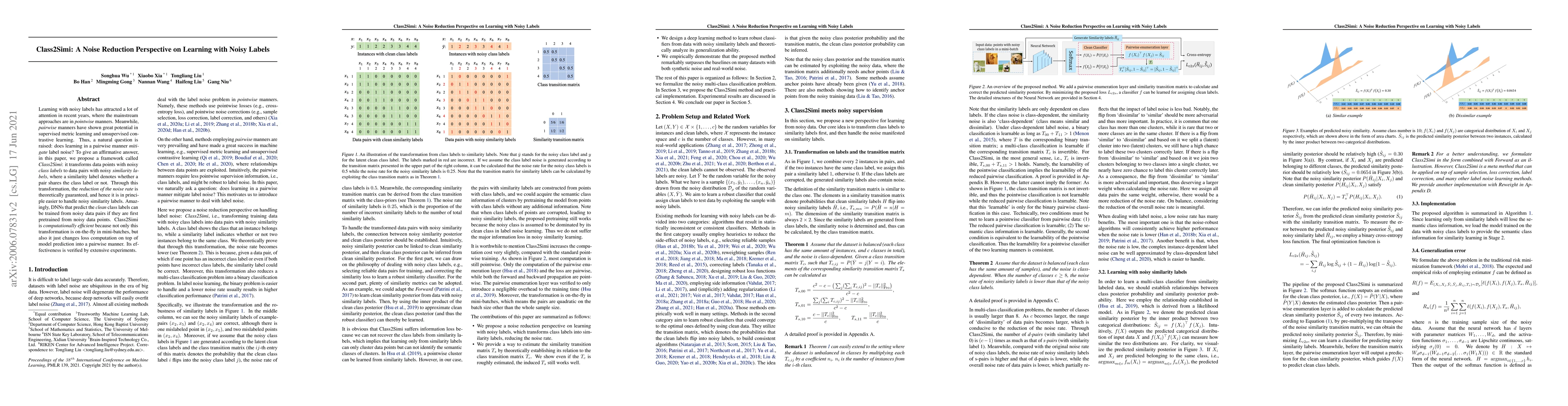 This paper proposes Class2Simi, a framework for reducing noise in label-learning by transforming noisy class labels into noisy similarity labels, which are easier to handle. The method is efficient and effective, as demonstrated by experiments showing improved performance.