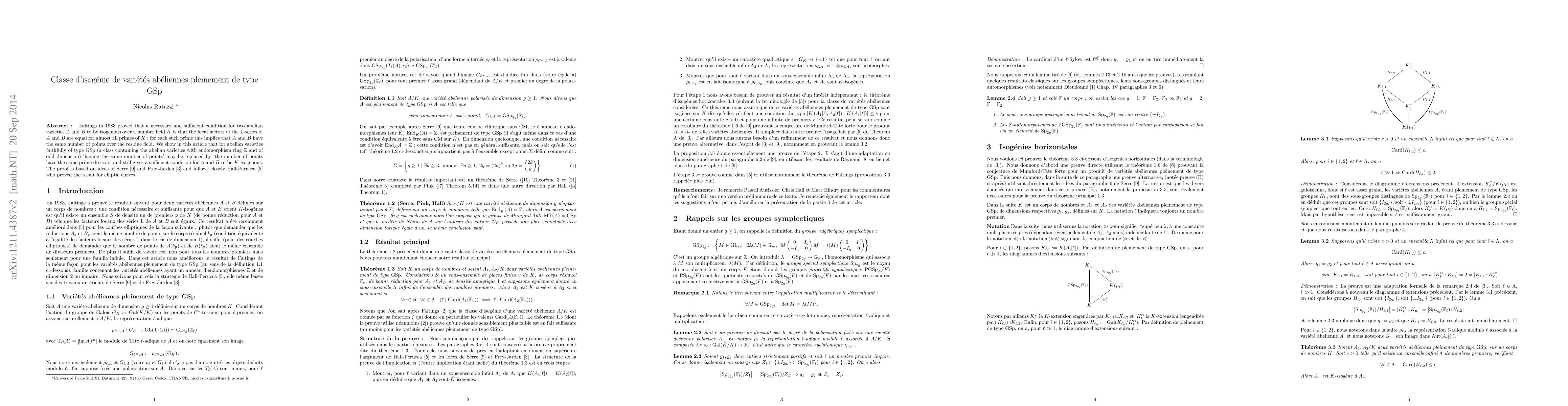 Faltings in 1983 proved that a necessary and sufficient condition for two abelian varieties $A$ and $B$ to be isogenous over a number field $K$ is that the local factors of the L-series of $A$ and $B$ are equal for almost all primes of $K$ ; for each such prime this implies that $A$ and $B$ have the same number of points over the residue field. We show in this article that for abelian varieties faithfully of type GSp (a class containing the abelian varieties with endomorphism ring $\mathbb{Z}$ and of odd dimension) `having the same number of points' may be replaced by `the number of points have the same prime divisors' and still gives a sufficient condition for $A$ and $B$ to be $K$-isogenous. The proof is based on ideas of Serre \cite{serreim72} and Frey-Jarden \cite{FJ} and follows closely Hall-Perucca \cite{hallp} who proved the result for elliptic curves.