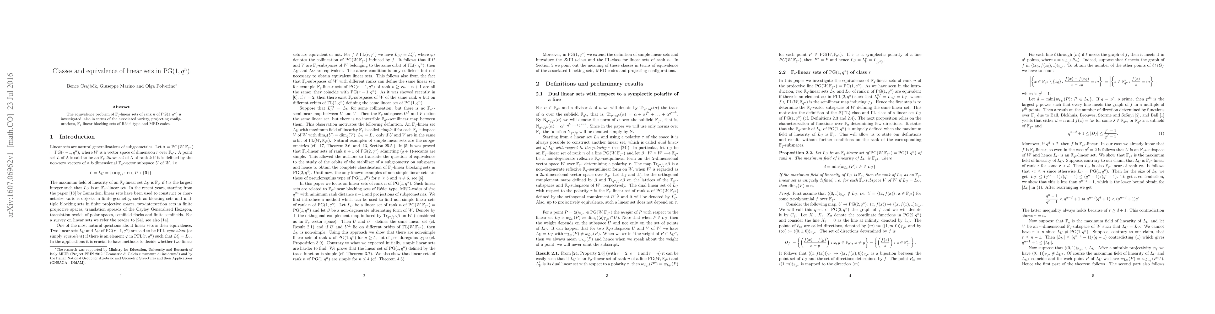 Researchers investigated equivalence classes of linear sets in projective space $PG(1,q^n)$, exploring connections to associated varieties, blocking sets, and MRD-codes. The study provides insight into the structure of these sets and their relationships.