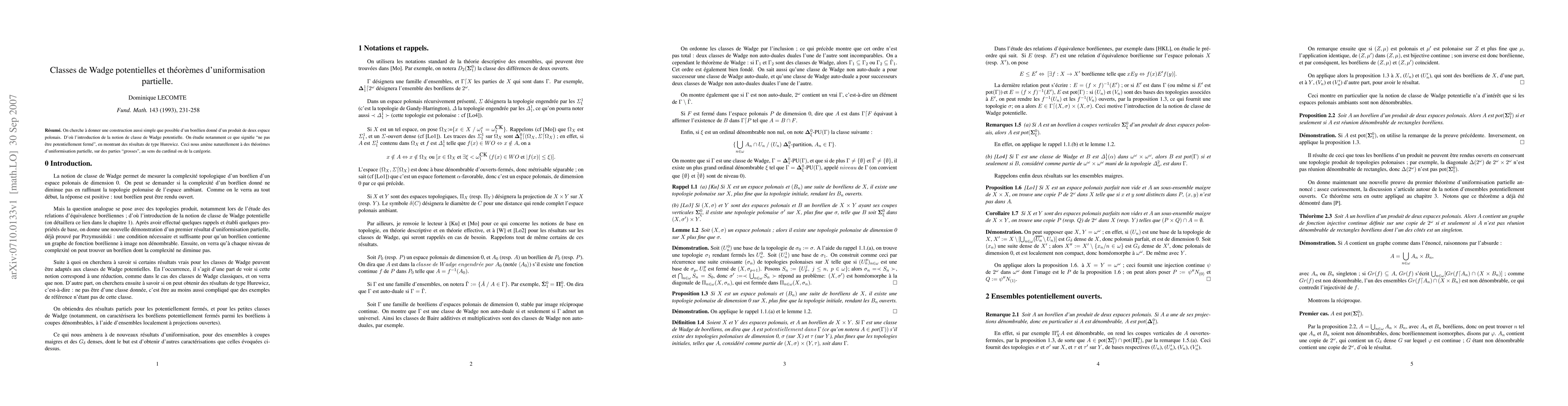 We want to give a construction as simple as possible of a Borel subset of a product of two Polish spaces. This introduces the notion of potential Wadge class. Among other things, we study the non-potentially closed sets, by proving Hurewicz-like results. This leads to partial uniformization theorems, on big sets, in the sense of cardinality or Baire category.