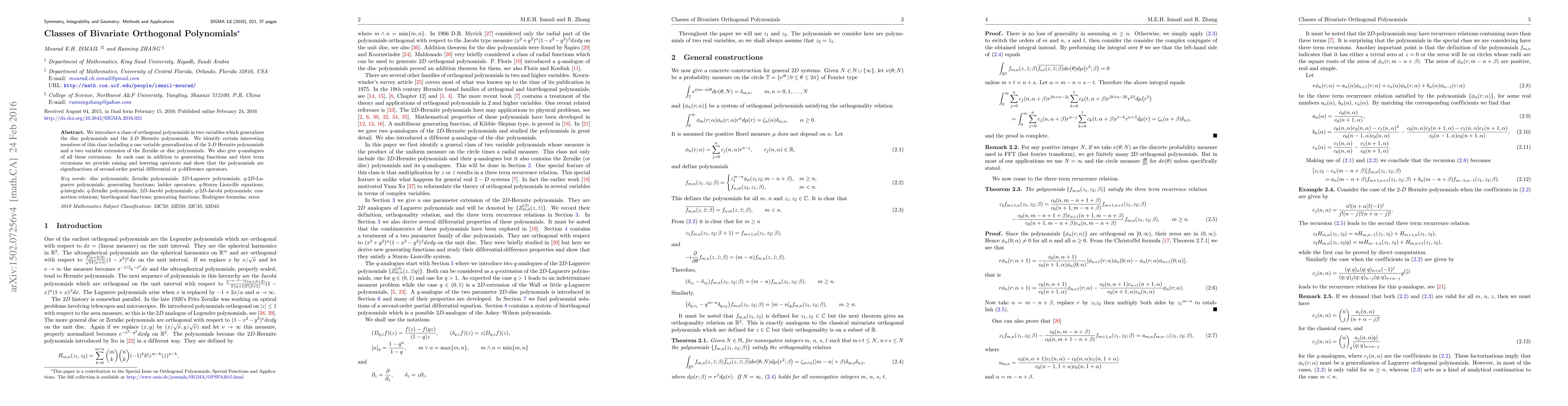 Researchers introduce a class of bivariate orthogonal polynomials that generalize disc polynomials and 2-D Hermite polynomials, providing raising and lowering operators and eigenfunction properties for specific differential or q-difference operators.