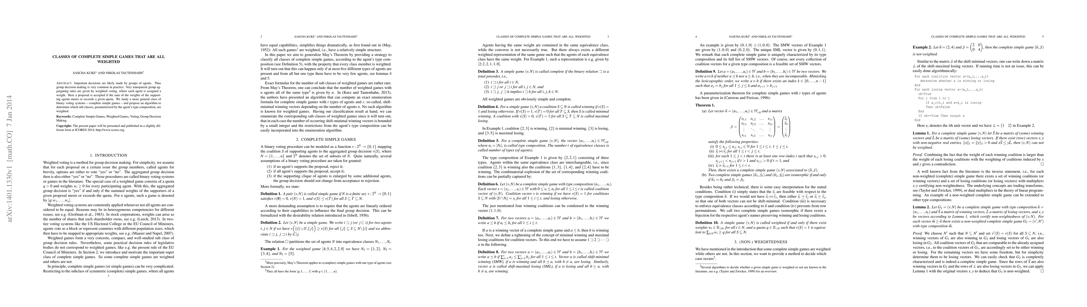 Important decisions are likely made by groups of agents. Thus group decision making is very common in practice. Very transparent group aggregating rules are given by weighted voting, where each agent is assigned a weight. Here a proposal is accepted if the sum of the weights of the supporting agents meets or exceeds a given quota. We study a more general class of binary voting systems -- complete simple games -- and propose an algorithm to determine which sub classes, parameterized by the agent's type composition, are weighted.