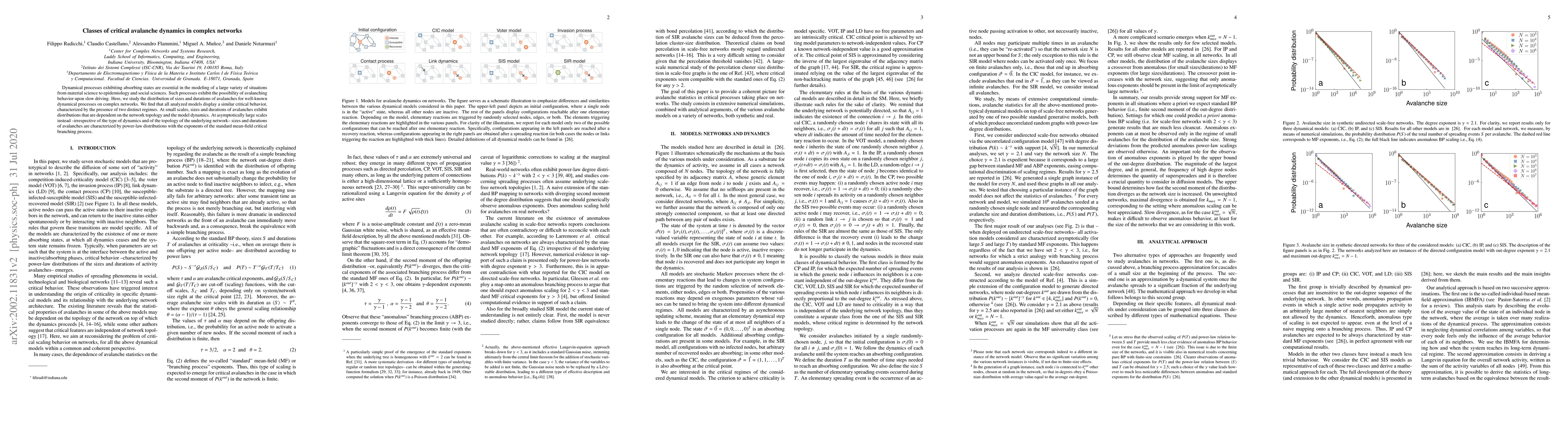 This paper investigates the critical dynamics of absorbing state processes on complex networks, revealing that all analyzed models show two distinct regimes: small-scale dynamics dependent on network topology and model specifics, and large-scale power-law distributions independent of these factors.