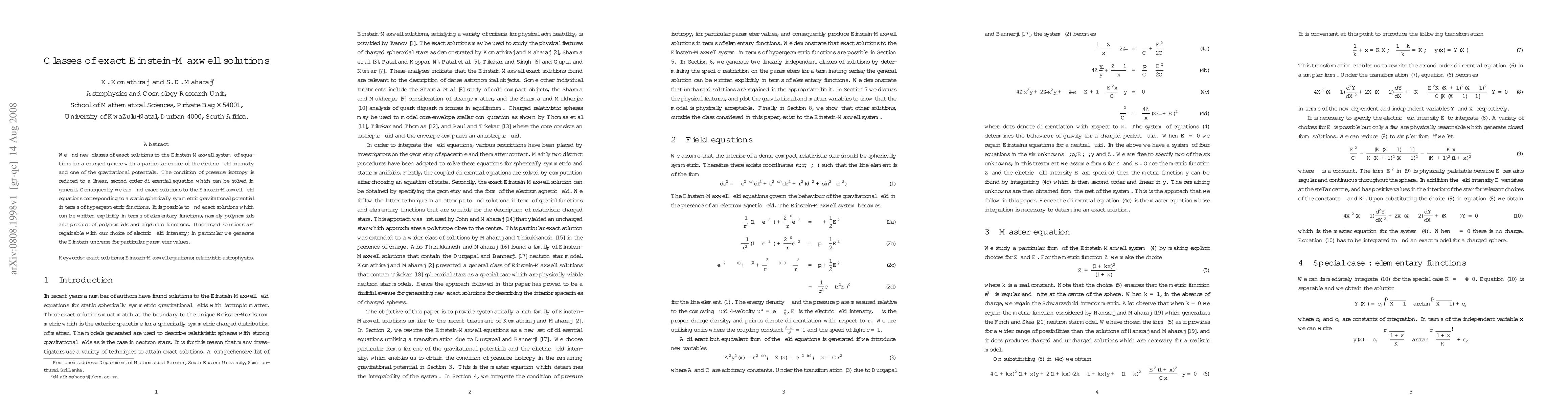 We find new classes of exact solutions to the Einstein-Maxwell system of equations for a charged sphere with a particular choice of the electric field intensity and one of the gravitational potentials. The condition of pressure isotropy is reduced to a linear, second order differential equation which can be solved in general. Consequently we can find exact solutions to the Einstein-Maxwell field equations corresponding to a static spherically symmetric gravitational potential in terms of hypergeometric functions. It is possible to find exact solutions which can be written explicitly in terms of elementary functions, namely polynomials and product of polynomials and algebraic functions. Uncharged solutions are regainable with our choice of electric field intensity; in particular we generate the Einstein universe for particular parameter values.