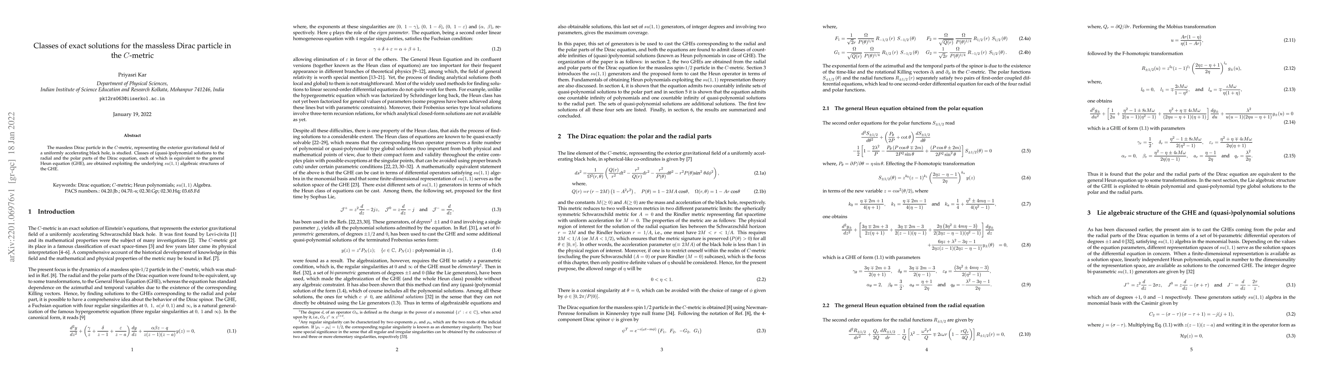 The massless Dirac particle in the $C$-metric, representing the exterior gravitational field of a uniformly accelerating black hole, is studied. Classes of (quasi-)polynomial solutions to the radial and the polar parts of the Dirac equation, each of which is equivalent to the general Heun equation~(GHE), are obtained exploiting the underlying $su(1,1)$ algebraic structures of the GHE.