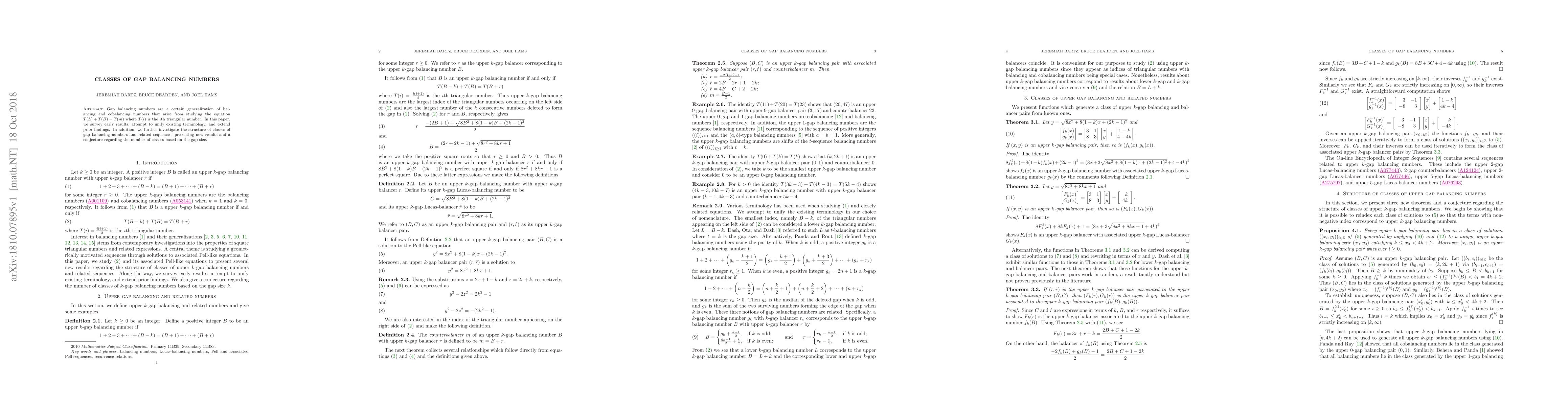 Gap balancing numbers are a certain generalization of balancing and cobalancing numbers that arise from studying the equation ${T(L)+T(B)=T(m)}$ where $T(i)$ is the $i$th triangular number. In this paper, we survey early results, attempt to unify existing terminology, and extend prior findings. In addition, we further investigate the structure of classes of gap balancing numbers and related sequences, presenting new results and a conjecture regarding the number of classes based on the gap size.