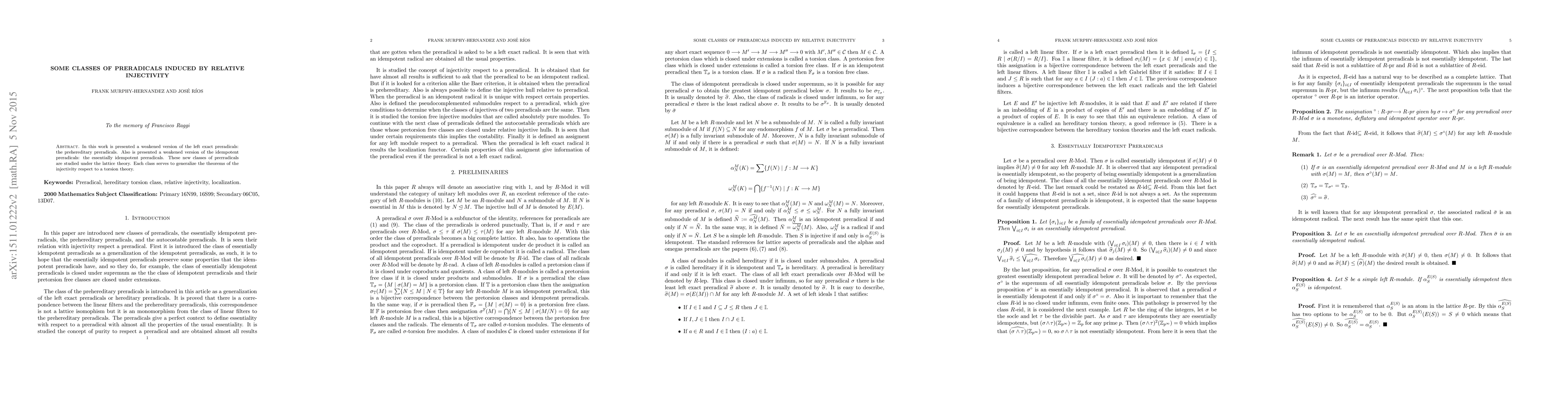 In this work is presented a weakened version of the left exact preradicals: the prehereditary preradicals. Also is presented a weakened version of the idempotent preradicals: the essentially idempotent preradicals. These new classes of prerradicals are studied under the lattice theory. Each class serves to generalize the theorems of the injectivity respect to a torsion theory.
