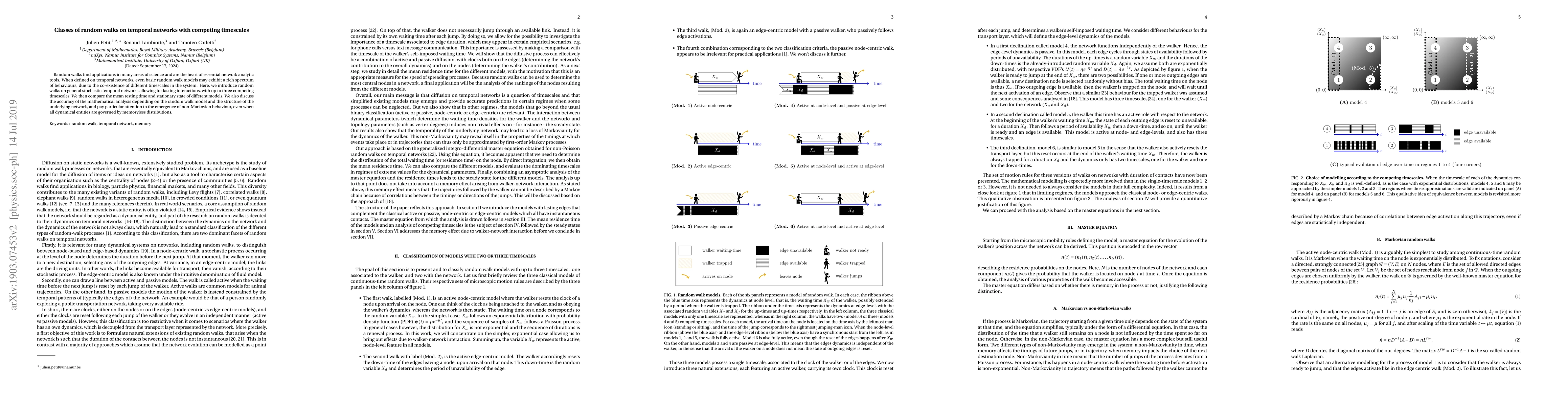 This paper explores random walks on stochastic temporal networks with multiple competing timescales, analyzing their mean resting time and stationary states. It highlights the emergence of non-Markovian behavior despite memoryless distributions, and discusses the accuracy of mathematical analysis based on the network structure and random walk model.