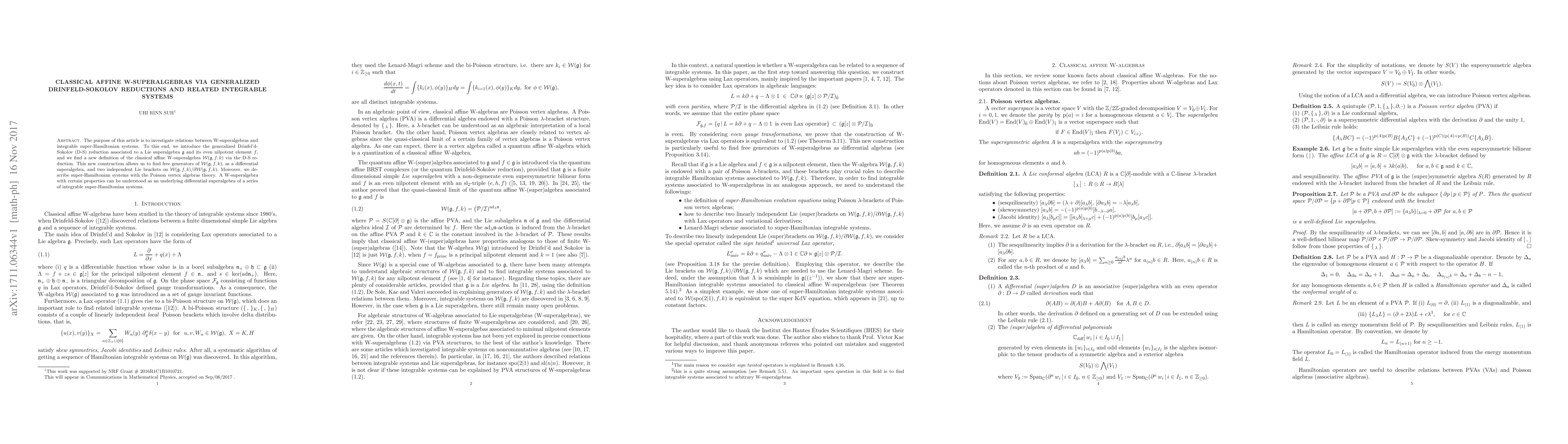 This paper explores the connection between classical affine W-superalgebras and integrable super-Hamiltonian systems through generalized Drinfeld-Sokolov reductions. It introduces a new definition of classical affine W-superalgebras via D-S reduction and identifies their free generators and independent Lie brackets.