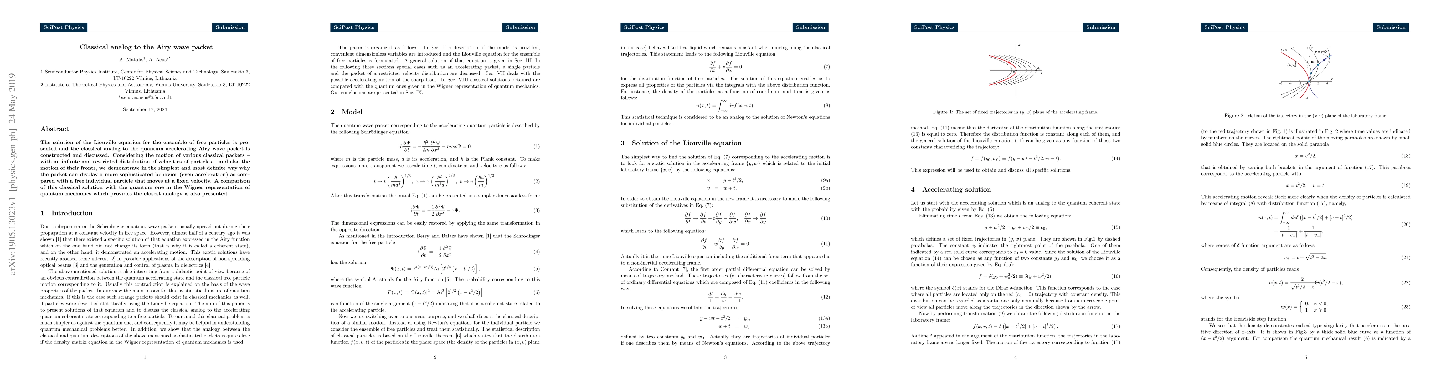 Researchers solve the Liouville equation for a group of free particles, creating a classical analog to the quantum Airy wave packet that displays more sophisticated behavior than individual particles.