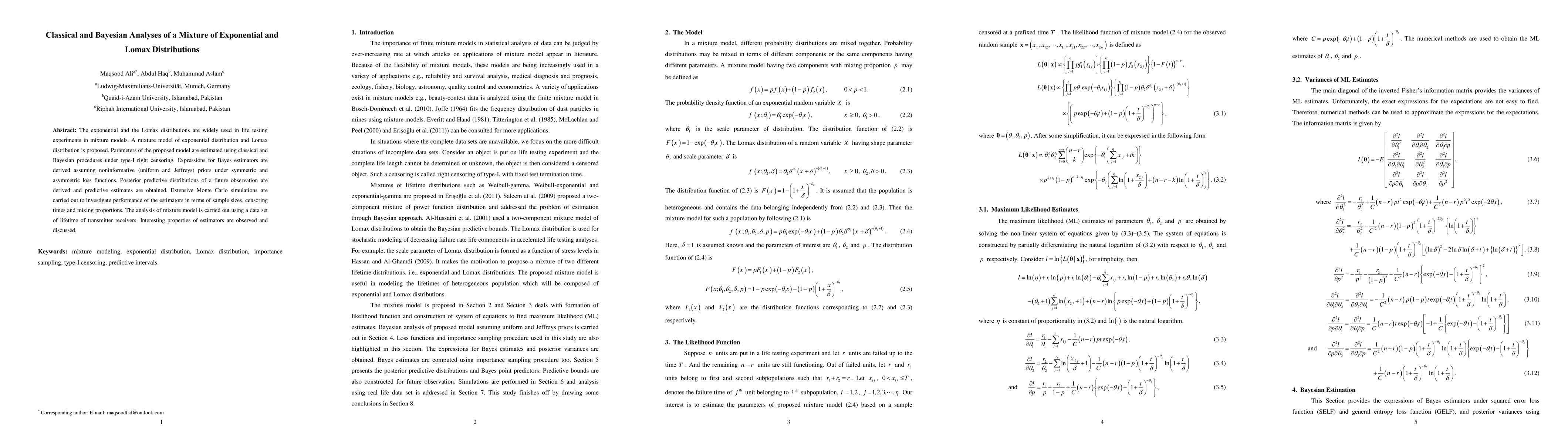 This paper proposes a mixture model combining exponential and Lomax distributions for life testing experiments, estimating parameters via classical and Bayesian methods under type-I right censoring. It evaluates the performance of the estimators through Monte Carlo simulations and analyzes a dataset of transmitter receiver lifetimes, highlighting interesting properties of the estimators.