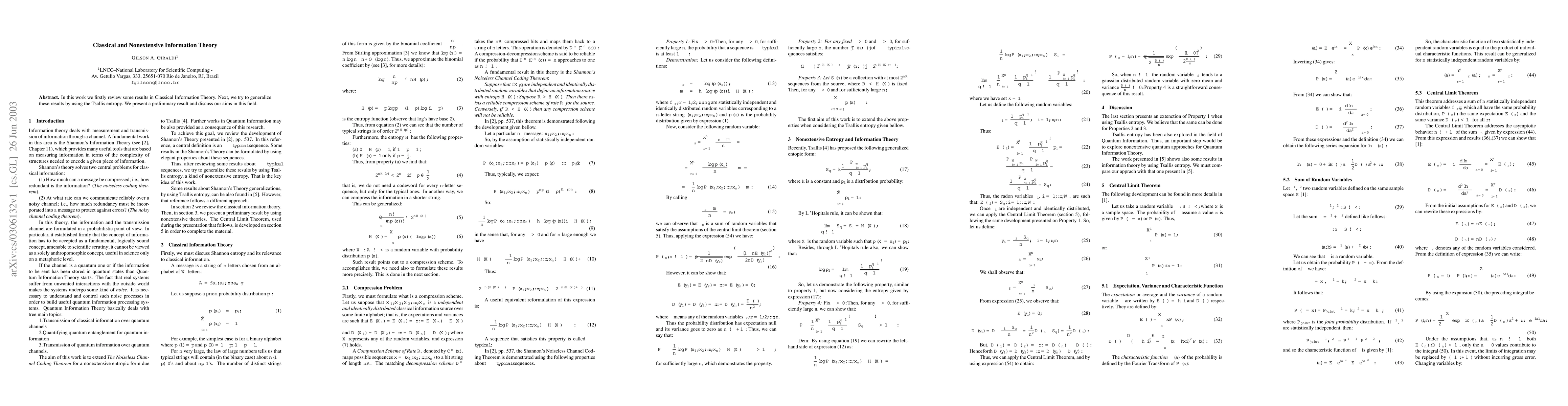 In this work we firstly review some results in Classical Information Theory. Next, we try to generalize these results by using the Tsallis entropy. We present a preliminary result and discuss our aims in this field.