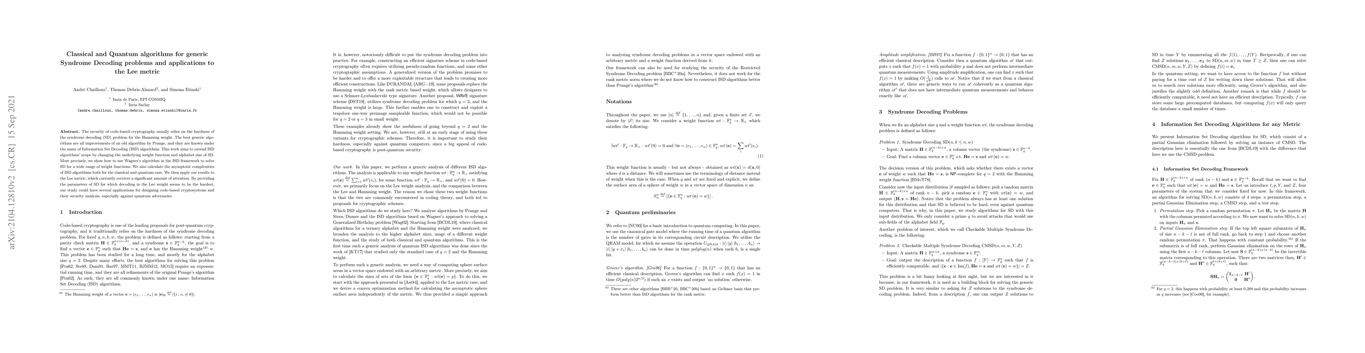 This paper explores classical and quantum algorithms for solving the syndrome decoding problem under various weight functions, extending Information Set Decoding (ISD) methods. It applies these algorithms to the Lee metric, providing insights into the hardest decoding scenarios and implications for code-based cryptography security against quantum attacks.