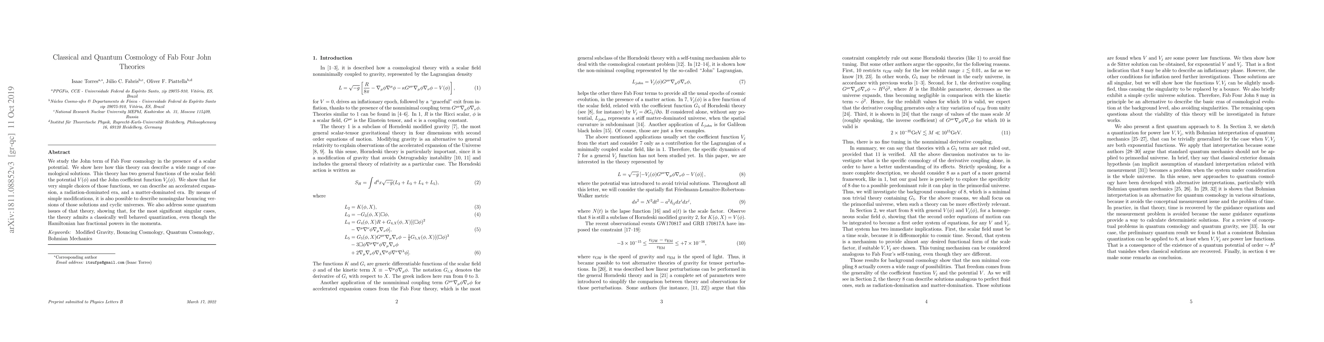 This paper proposes a quantum cosmological model based on a combination of two terms from the Fab Four theories, addressing the cosmological constant problem through a self-tuning mechanism. It resolves issues in canonical quantization using conformable fractional derivatives, yielding both singular and non-singular solutions.