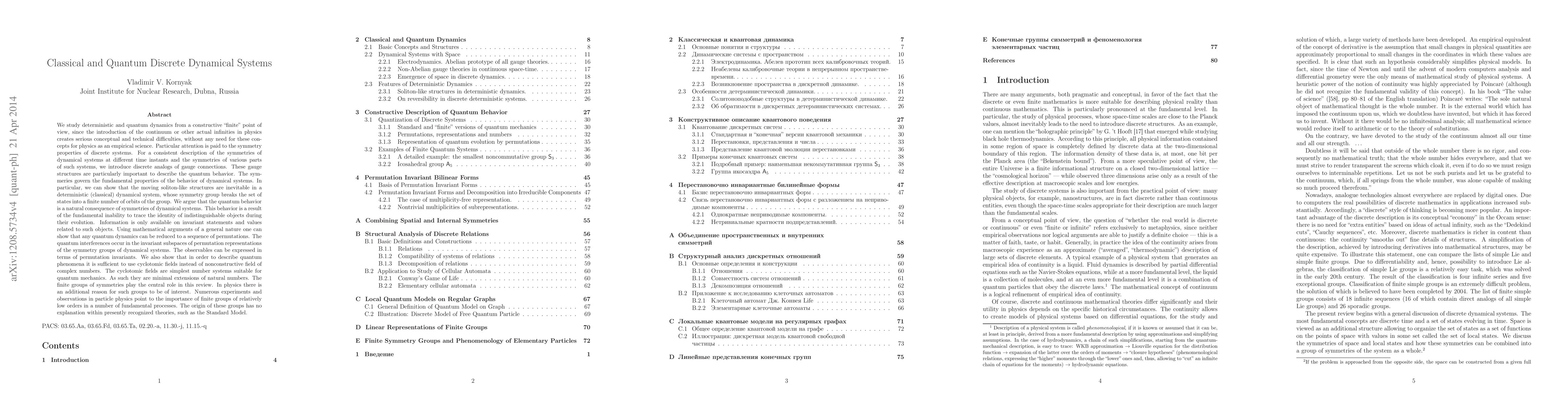 We study deterministic and quantum dynamics from a constructive "finite" point of view, since the introduction of a continuum, or other actual infinities in physics poses serious conceptual and technical difficulties, without any need for these concepts to physics as an empirical science. For a consistent description of the symmetries of dynamical systems at different times and the symmetries of the various parts of such systems, we introduce discrete analogs of the gauge connections. Gauge structures are particularly important to describe the quantum behavior. We show that quantum behavior is the result of a fundamental inability to trace the identity of indistinguishable objects in the process of evolution. Information is available only on invariant statements and values, relating to such objects. Using mathematical arguments of a general nature we can show that any quantum dynamics can be reduced to a sequence of permutations. Quantum interferences occur in the invariant subspaces of permutation representations of symmetry groups of dynamical systems. The observable values can be expressed in terms of permutation invariants. We also show that for the description of quantum phenomena, instead of a nonconstructive number system --- the field of complex numbers, it is enough to use cyclotomic fields --- the minimal extentions of natural numbers suitable for quantum mechanics. Finite groups of symmetries play a central role in this article. The interest in such groups has an additional motivation in physics. Numerous experiments and observations in particle physics point to an important role of finite groups of relatively low orders in a number of fundamental processes.