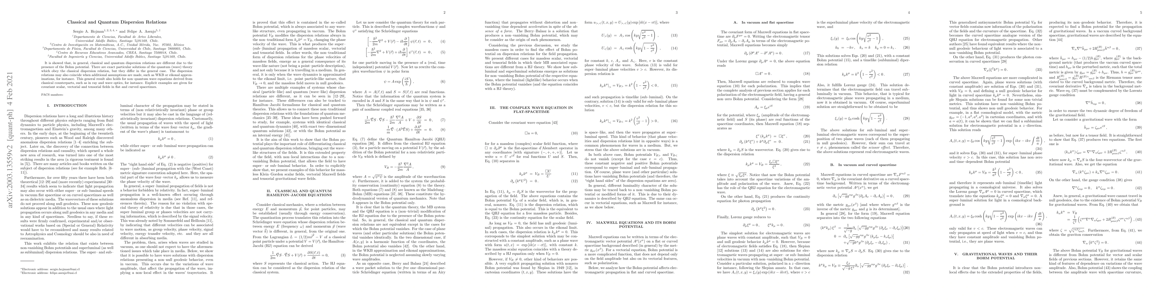 This paper demonstrates that classical and quantum dispersion relations differ fundamentally due to the Bohm potential, though specific quantum solutions can match classical relations. The equivalence can be achieved under certain assumptions like WKB or eikonal approximations, and this principle extends to non-quantum wave equations derived from classical models.