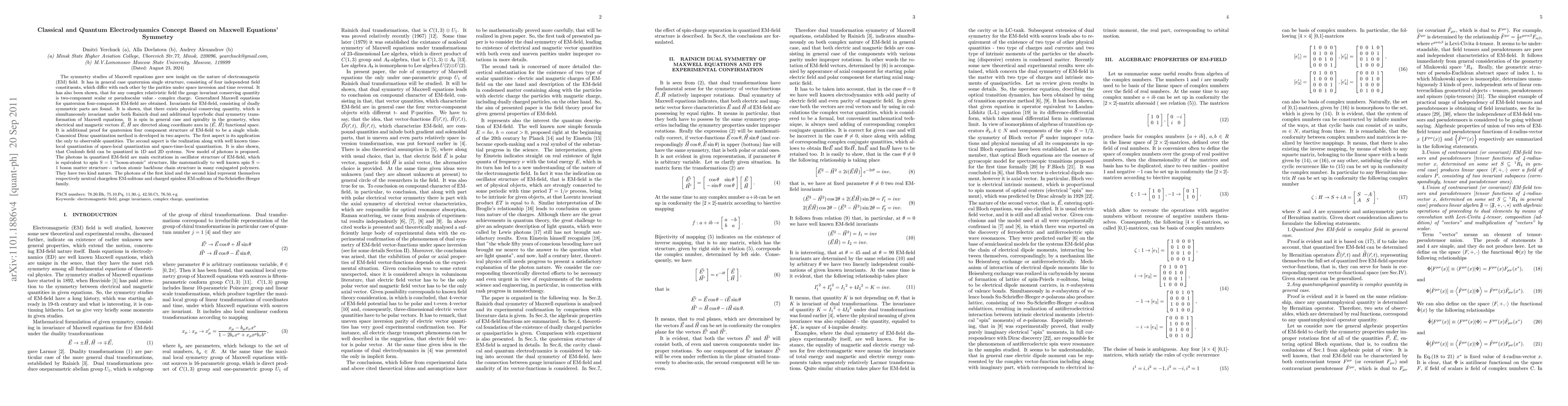 The symmetry studies of Maxwell equations gave new insight on the nature of electromagnetic (EM) field. It has in general case quaternion single structure, consisting of four independent field constituents, which differ with each other by the parities under space inversion and time reversal. Generalized Maxwell equations for quaternion four-component EM-field are obtained. Invariants for EM-field, consisting of dually symmetric parts are found. It is shown, that there exists physical conserving quantity, which is simultaneously invariant under both Rainich dual and additional hyperbolic dual symmetry transformation of Maxwell equations. It is spin in general case and spirality in the geometry, when electrical and magnetic vectors $\vec{E}$, $\vec{H}$ are directed along coordinate axes in ($\vec{E}$, $\vec{H}$) functional space. It is additional proof for quaternion four component structure of EM-field to be a single whole. Canonical Dirac quantization method is developed in two aspects. The first aspect is its application the only to observable quantities. The second aspect is the realization along with well known time-local quantization of space-local quantization and space-time-local quantization. It is also shown, that Coulomb field can be quantized in 1D and 2D systems. New model of photons is proposed. The photons in quantized EM-field are main excitations in oscillator structure of EM-field, which is equivalent to spin S = 1 "boson-atomic" structure, like matematically to well known spin S = 1 boson matter structure - carbon atomic backbone chain structure in many conjugated polymers. They have two kind nature. The photons of the first kind and the second kind represent themselves respectively neutral chargeless EM-solitons and charged spinless EM-solitons of Su-Schrieffer-Heeger family.