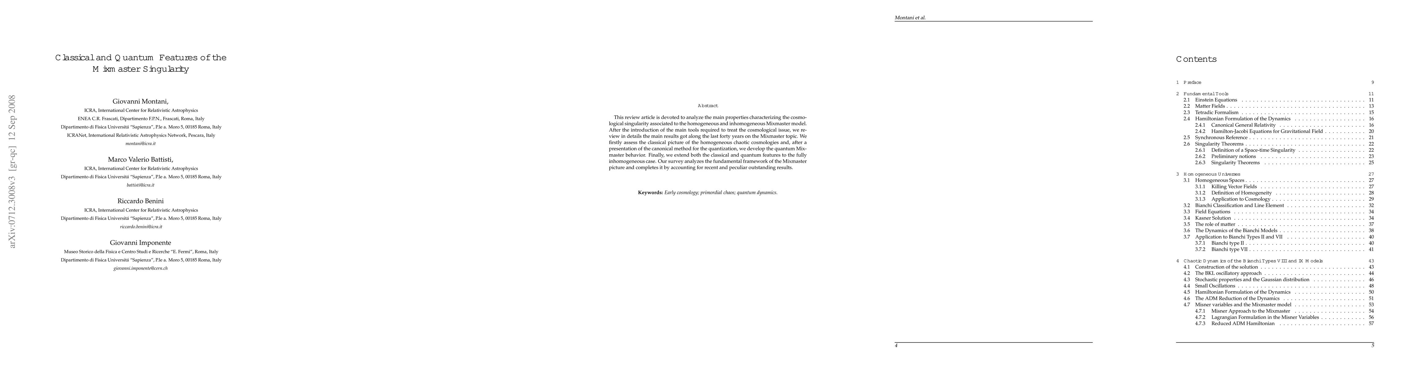 This paper reviews the classical and quantum characteristics of the Mixmaster singularity, examining both homogeneous and inhomogeneous cosmological models. It discusses the chaotic nature of homogeneous cosmologies and the quantum behavior, extending findings to inhomogeneous cases and highlighting recent developments.