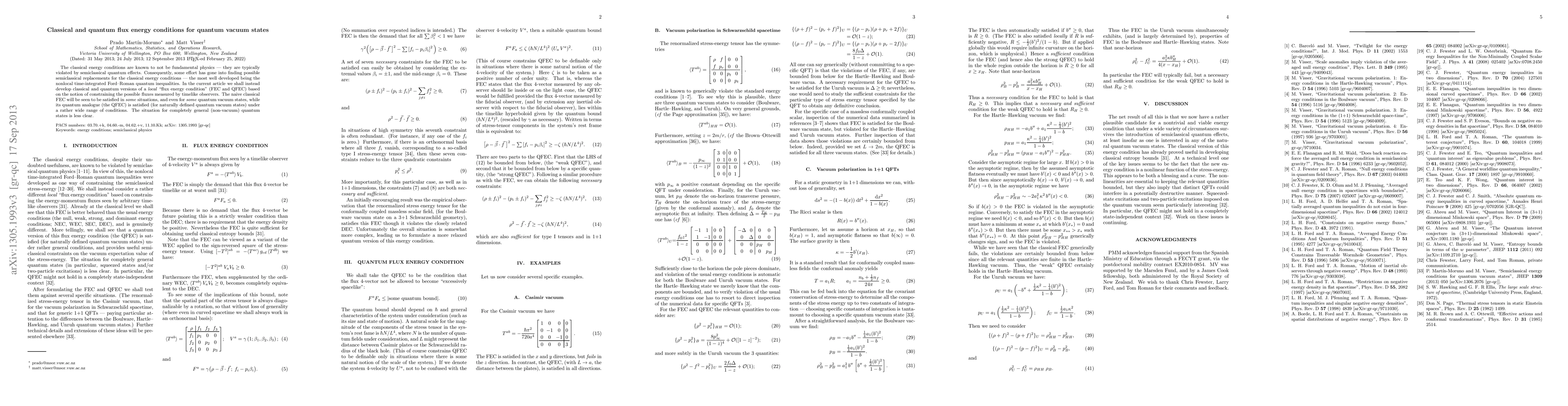This paper develops classical and quantum versions of a flux energy condition (FEC and QFEC) to replace classical energy conditions, which are often violated by quantum effects. The QFEC is shown to hold for naturally defined quantum vacuum states under various conditions.