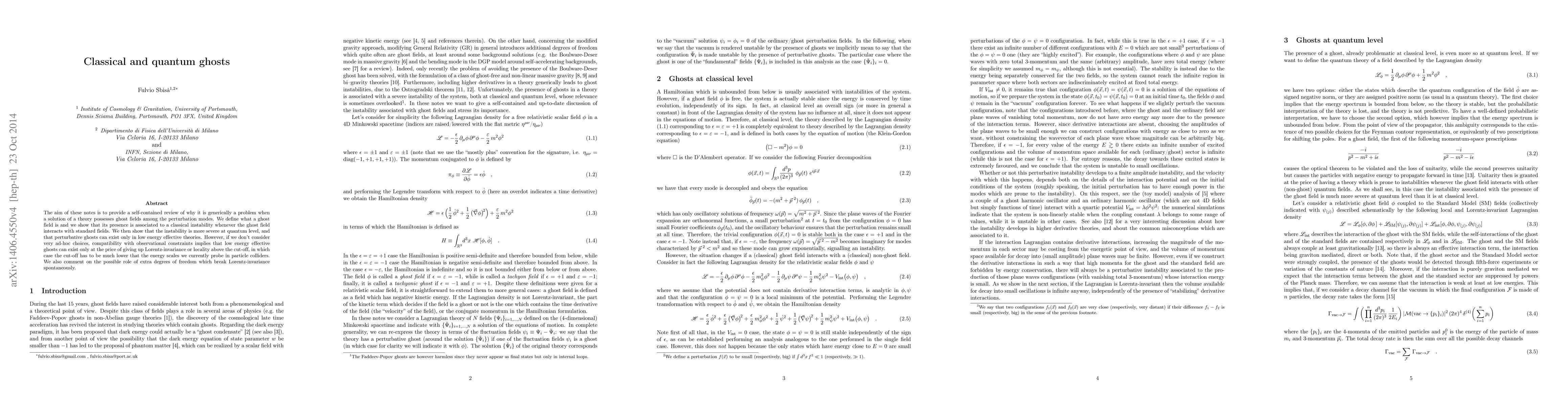 The aim of these notes is to provide a self-contained review of why it is generically a problem when a solution of a theory possesses ghost fields among the perturbation modes. We define what a ghost field is and we show that its presence is associated to a classical instability whenever the ghost field interacts with standard fields. We then show that the instability is more severe at quantum level, and that perturbative ghosts can exist only in low energy effective theories. However, if we don't consider very ad-hoc choices, compatibility with observational constraints implies that low energy effective ghosts can exist only at the price of giving up Lorentz-invariance or locality above the cut-off, in which case the cut-off has to be much lower that the energy scales we currently probe in particle colliders. We also comment on the possible role of extra degrees of freedom which break Lorentz-invariance spontaneously.