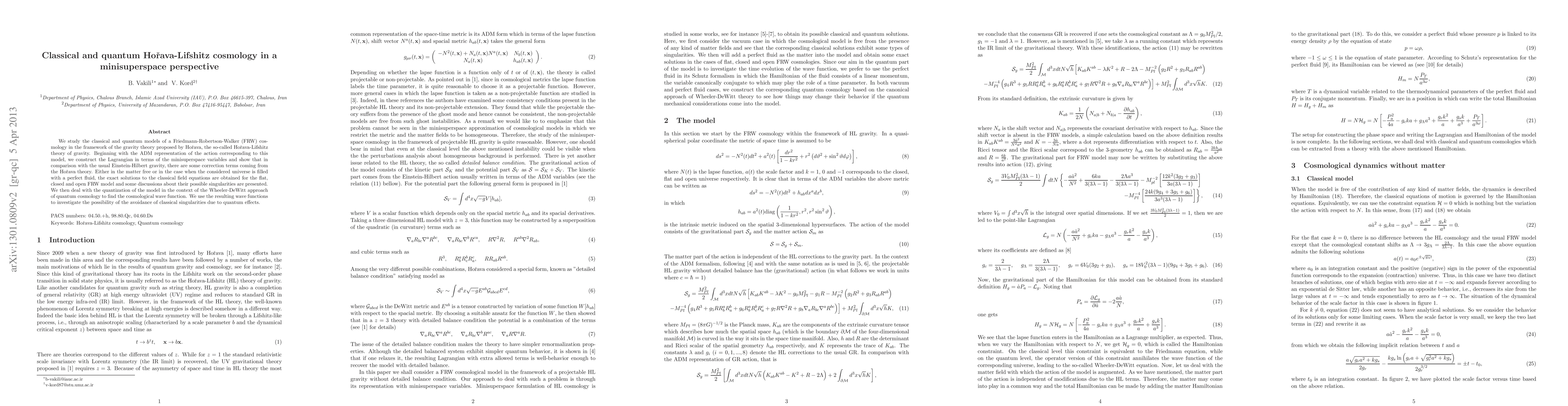 This paper explores classical and quantum models of Friedmann-Robertson-Walker cosmology within the Hořava-Lifshitz gravity framework, deriving exact solutions for various FRW models and discussing potential singularity avoidance via quantum effects.