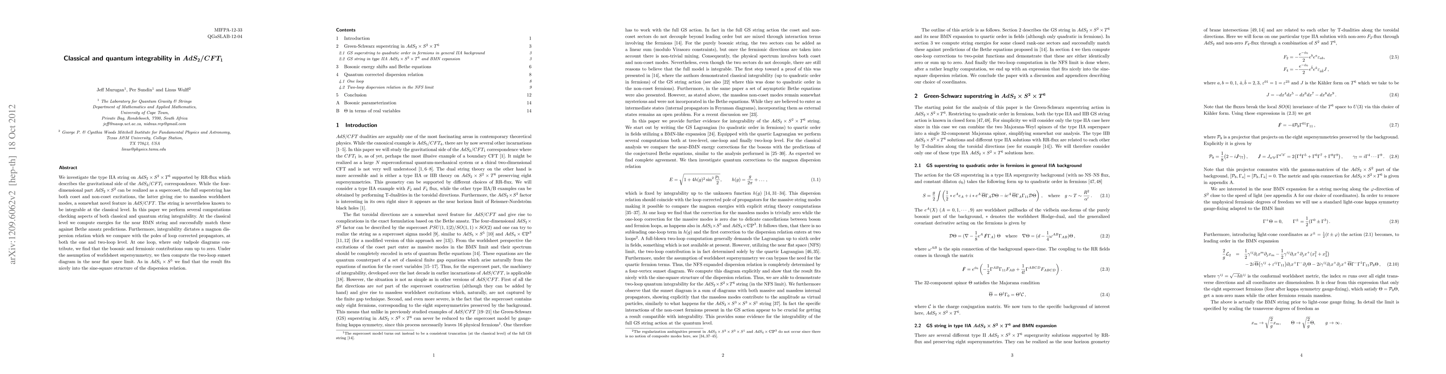 This paper explores the classical and quantum integrability of the type IIA string in AdS(2)xS(2)xT(6) with RR-flux, establishing the gravitational side of the AdS(2)/CFT(1) correspondence. It confirms classical integrability through energy computations matching Bethe ansatz predictions and investigates quantum aspects by comparing loop-corrected propagator poles with the magnon dispersion relation, revealing intriguing zero-sum properties at one loop and a sine-square structure at two loops.